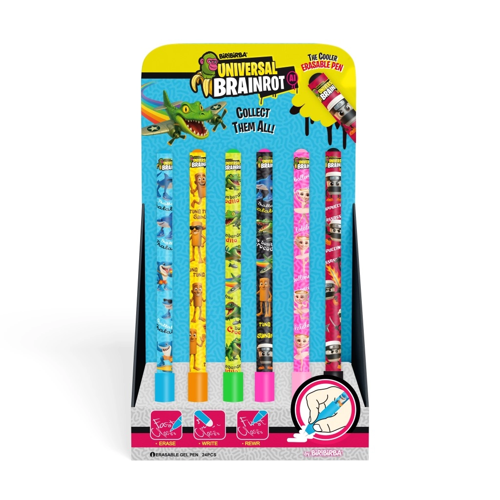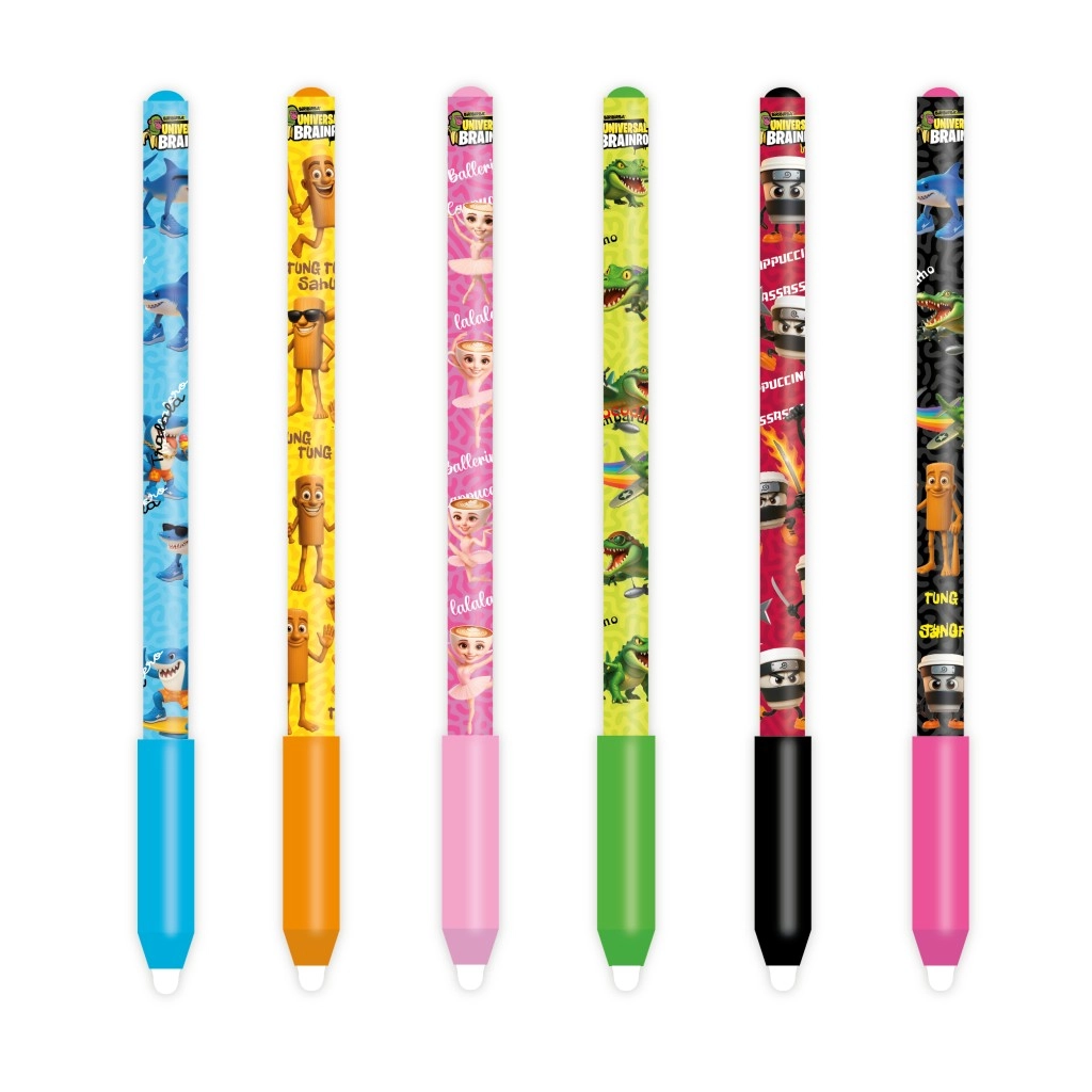 Découvrez ce stylo effaçable fun sur le thème Italian Brainrot – une série de mèmes internet surréalistes qui a conquis TikTok et Instagram. L’écriture est souple et, grâce à une encre spéciale, vous effacez facilement sans abîmer le papier.