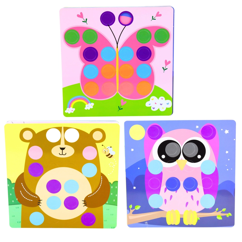 Les enfants placent des boutons colorés dans les trous en suivant les modèles et acquièrent naturellement la distinction des couleurs ainsi que des notions simples de création de motifs.