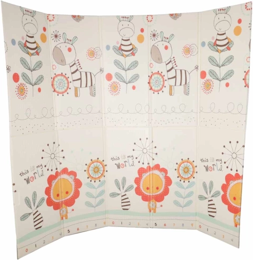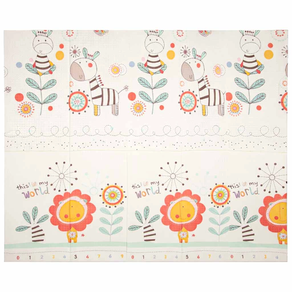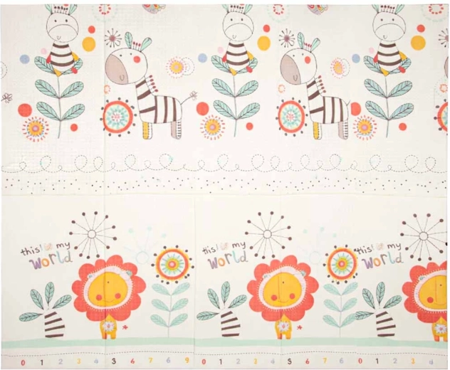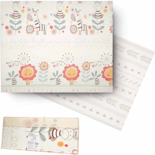 La conception réversible et la forme pliable facilitent le transport et le rangement. La surface antidérapante et légèrement texturée favorise le développement de la motricité et soutient des mouvements en toute sécurité. Le matériau XPE est résistant, anti-allergique et facile à entretenir – un simple coup de chiffon humide suffit.