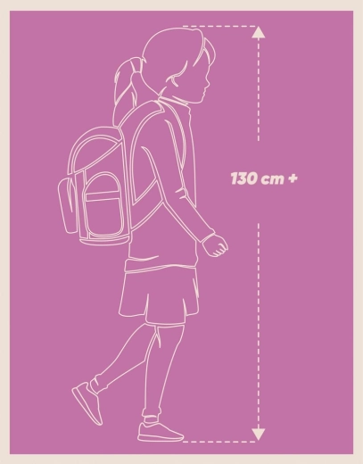 Le système réglable en trois tailles s’adapte à la croissance de l’enfant et favorise une posture saine grâce à un dos anatomique et respirant.