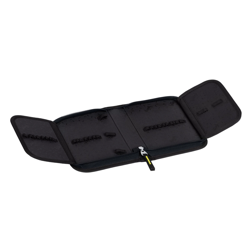 L’intérieur est conçu pour une clarté maximale : la trousse peut être entièrement dépliée une fois ouverte ; vous y trouverez une petite poche pour les accessoires, une fenêtre pour l’emploi du temps et des élastiques solides qui maintiennent en toute sécurité même les crayons et feutres triangulaires. Le matériau en fibres recyclées certifié Global Recycled Standard (GRS) confirme son respect de l’environnement.