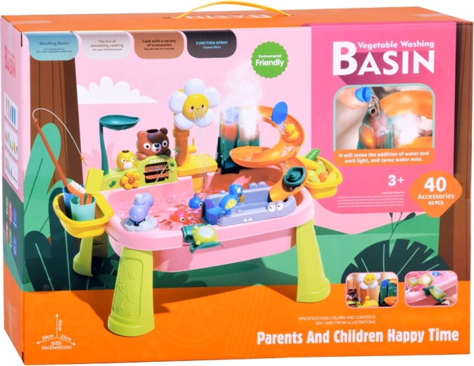 Découvrez le plaisir avec une table d’eau colorée qui transforme chaque jour en aventure. Les enfants profiteront de l’eau courante, d’un toboggan, d’un arroseur en forme de fleur, de la pêche et du lavage des “aliments”. La table stimule la créativité, la motricité fine et la stimulation sensorielle – idéale à la maison comme en extérieur.