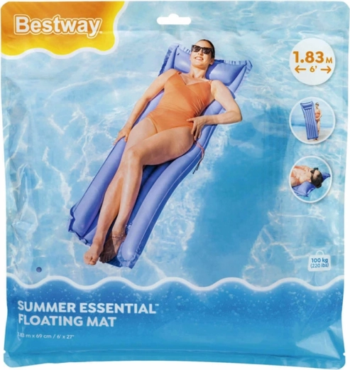 Profitez de l’été sur l’eau avec le matelas gonflable BESTWAY de 183 × 69 cm. Grâce au PVC résistant, à l’oreiller intégré et aux chambres segmentées, il offre une stabilité et un confort idéals pour se détendre dans la piscine, au lac ou à la mer. Il est léger, facile à transporter et se gonfle et se dégonfle rapidement ; un patch autocollant de réparation est inclus dans l’emballage.