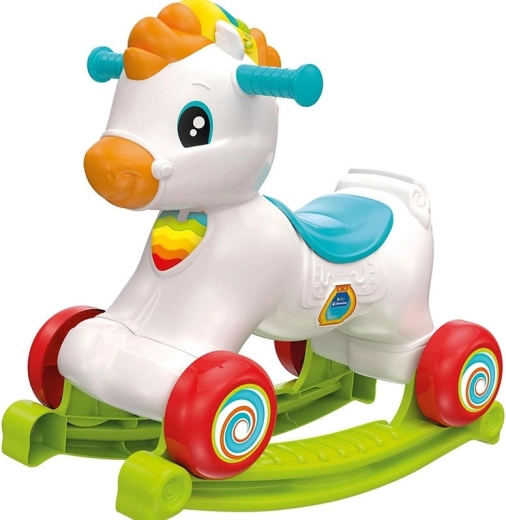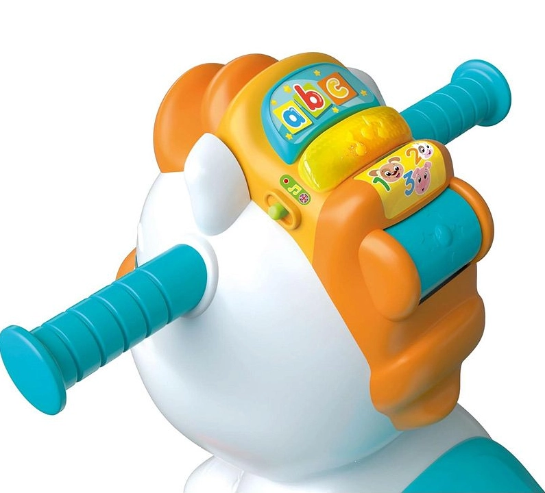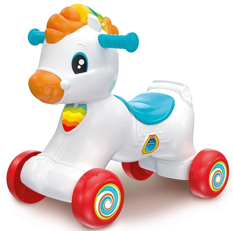 Le cheval interactif 3-en-1 CLEMENTONI évolue avec votre enfant : du balancement en toute sécurité, aux premiers pas avec le trotteur, jusqu’à la conduite autonome en porteur. Sa large base et ses roues stables garantissent une promenade confortable et sûre, tandis que ses poignées ergonomiques sont faciles à saisir par les petites mains.