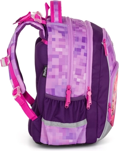Sac à dos scolaire OXY GO Playworld Girl léger et confortable pour filles du primaire (1re–3e classe), offrant un dossier anatomique et respirant, des bretelles réglables et des éléments réfléchissants pour la sécurité. Grâce à son volume de 22 l, à un agencement de poches bien pensé et à un fond rigide et imperméable, tout reste organisé et au sec.