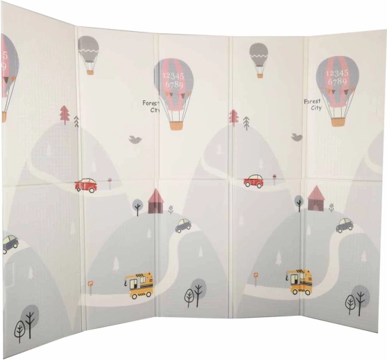 Ce tapis en mousse de haute qualité est conçu pour un jeu quotidien sûr et confortable. La couche élastique et douce amortit efficacement les chutes, les sauts et les premiers mouvements hésitants, tandis que la texture antidérapante, légèrement structurée assure la stabilité sur le sol. L’impression réversible avec un motif de rues et de petite ville d’un côté et un discret motif paysager pastel de l’autre stimule l’imagination tout en s’intégrant aux intérieurs modernes.