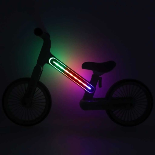 Le ruban LED intégré dans le cadre offre jusqu’à 20 modes d’éclairage. L’enfant est mieux visible au crépuscule et chaque balade devient encore plus amusante.