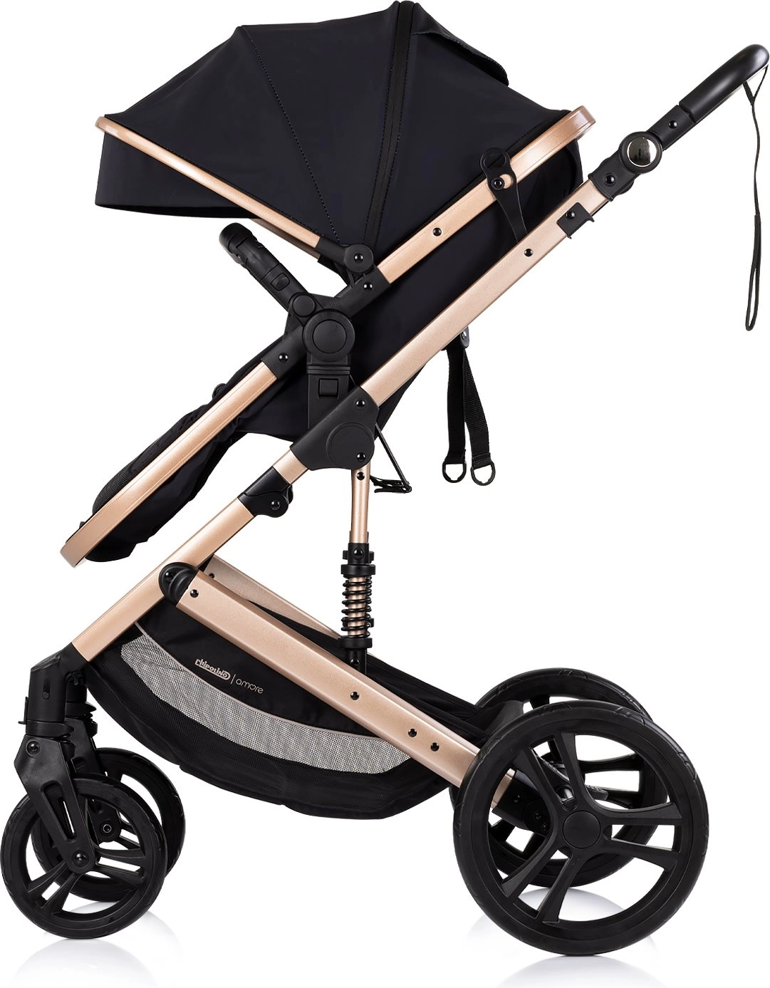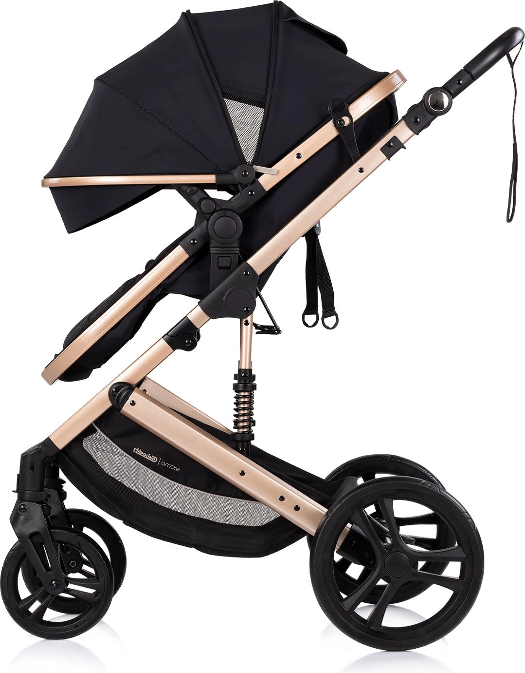 Chipolino Amore 2-en-1 Noir est une poussette à la fois stylée et pratique qui évolue avec votre enfant. Grâce à sa conception bien pensée, vous passez aisément de la nacelle pour les premiers mois au siège sport spacieux pour les plus grands jusqu’à 22 kg. Le châssis suspendu et les grandes roues assurent une conduite confortable même sur des surfaces irrégulières, tandis que la poignée réglable et les nombreux accessoires facilitent l’usage au quotidien.