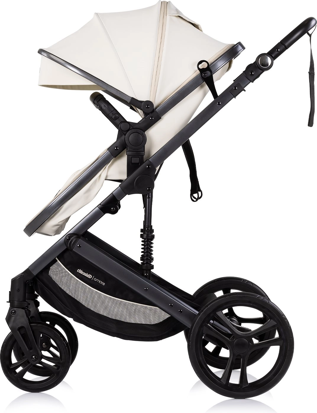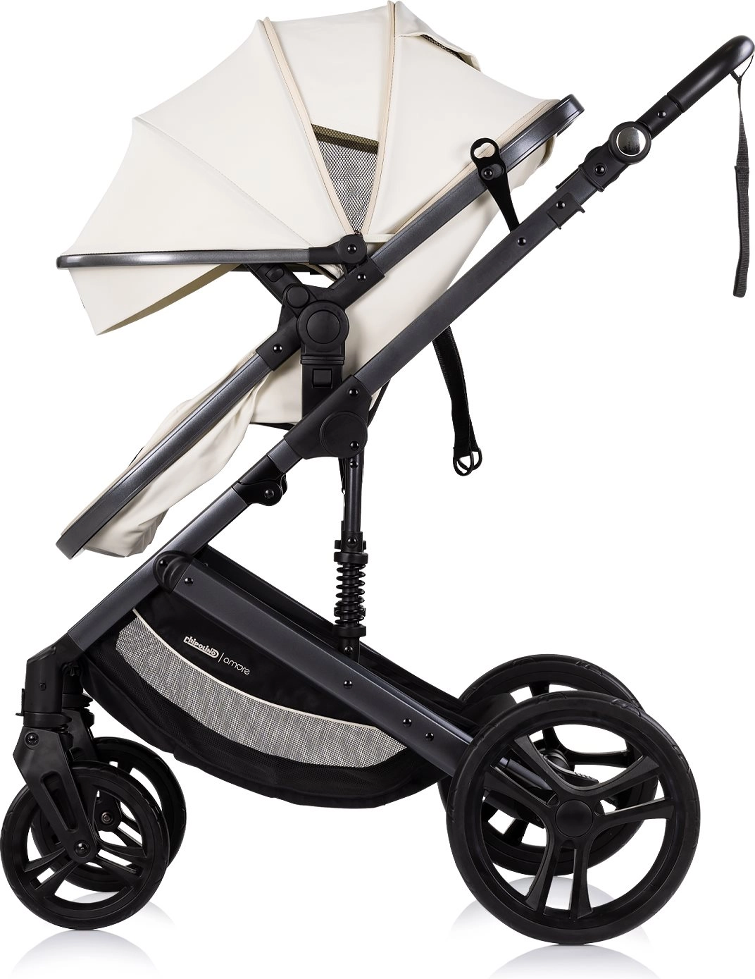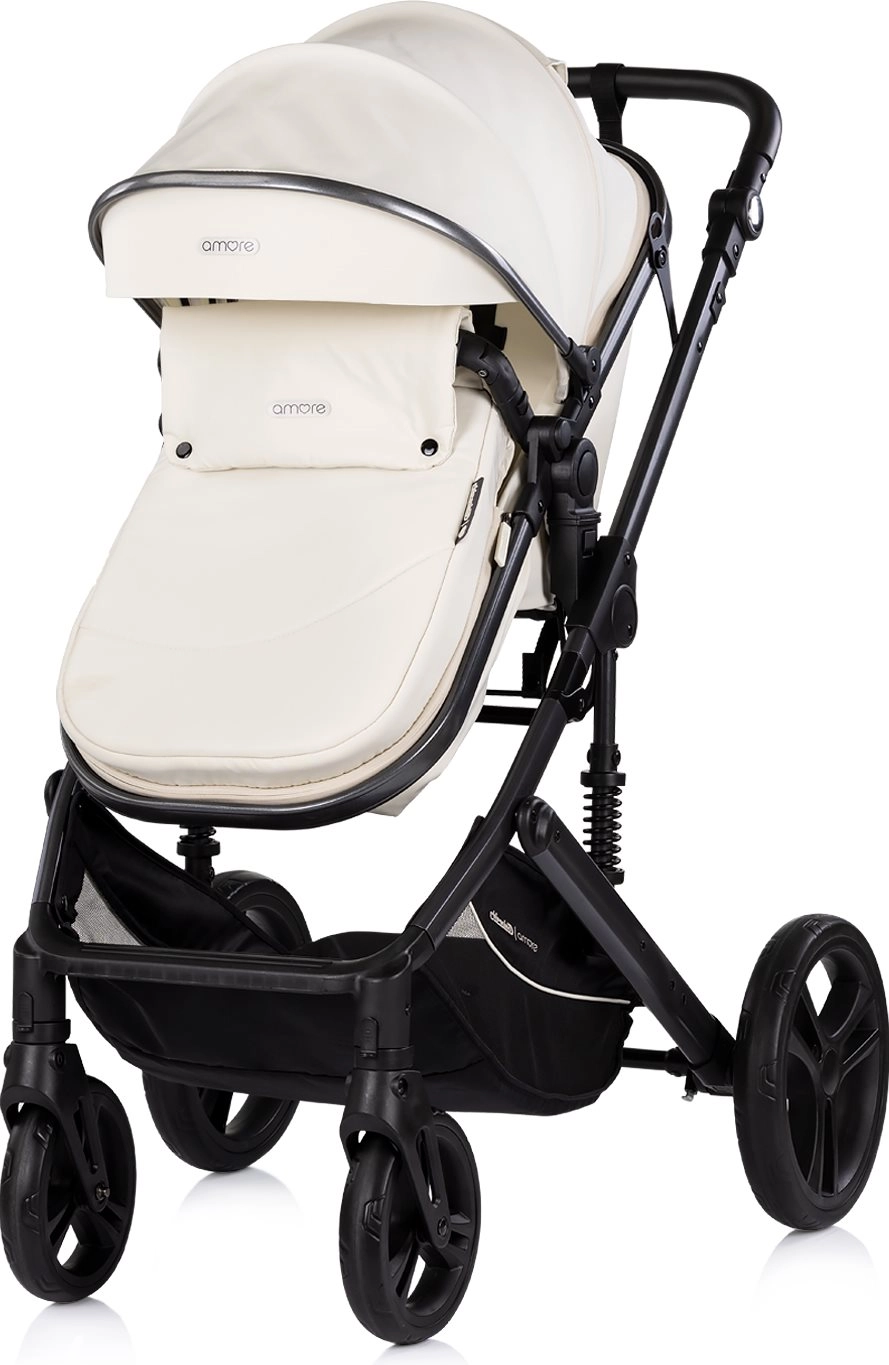 Chipolino Amore 2 en 1 en teinte Cashmere est une poussette polyvalente que vous passez aisément de la version sportive à la nacelle pour nouveau-né. Grâce à son châssis suspendu et à ses grandes roues tout-terrain, elle offre une conduite douce et confortable en ville comme sur des chemins plus légers. La capote réglable avec pare-soleil protège l’enfant, tandis que le harnais 5 points rembourré et l’arceau amovible renforcent la sécurité.