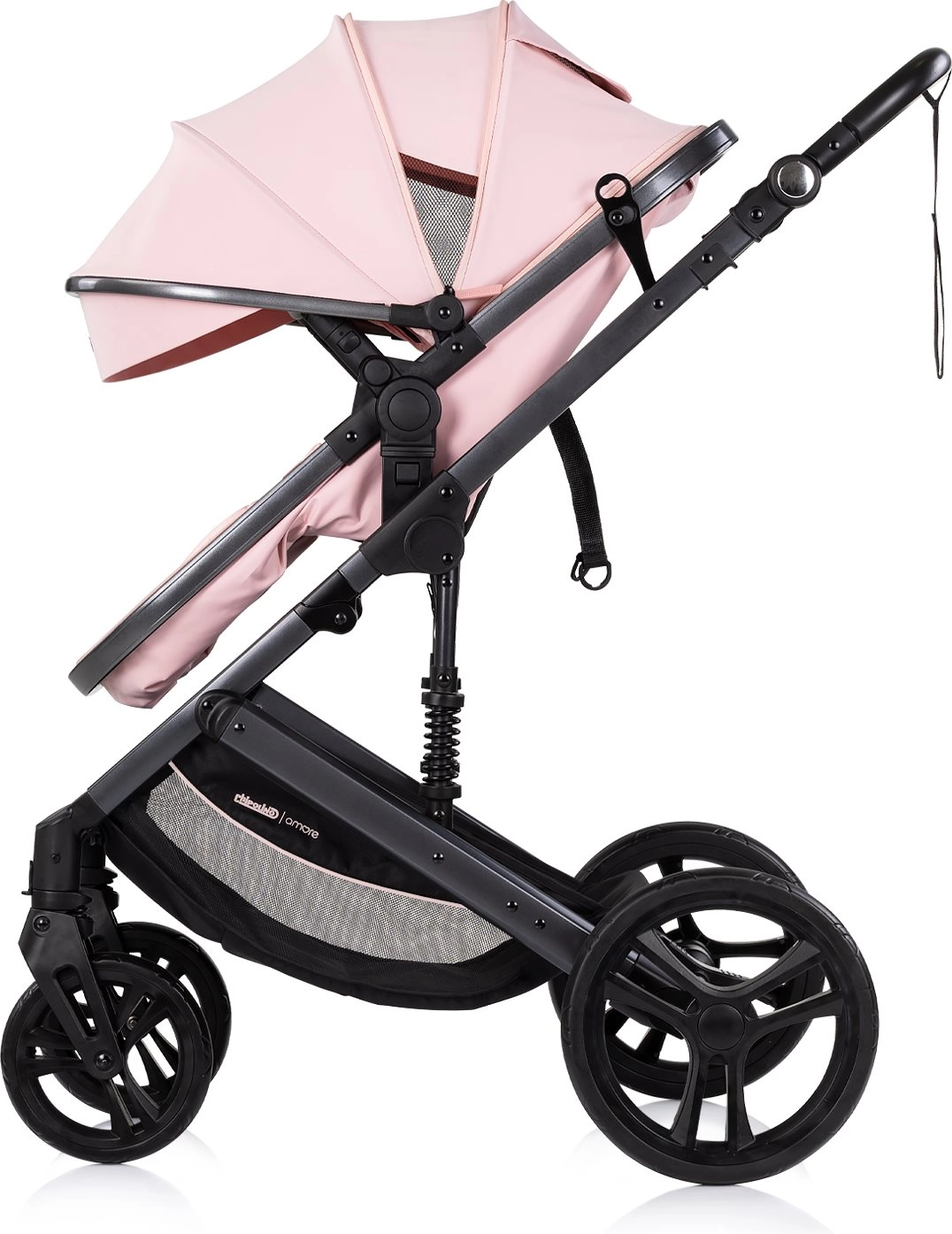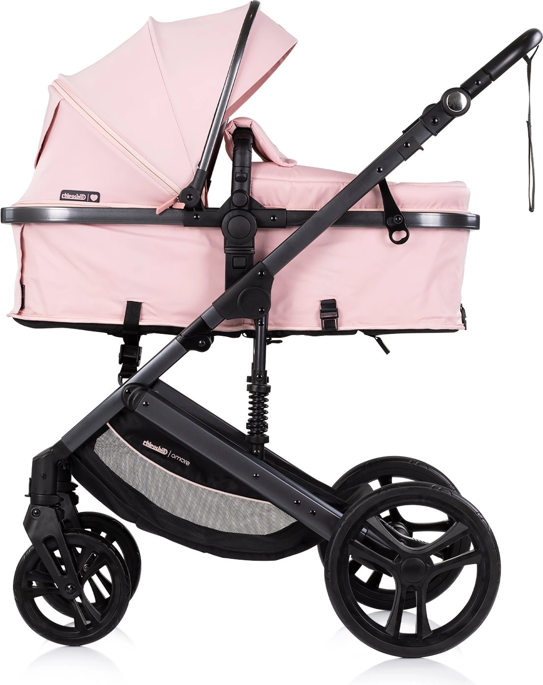 La poussette combinée stylée CHIPOLINO AMORE 2-en-1 en teinte Powder Pink offre landau et siège sport en un seul produit. Grâce à sa structure légère, à son châssis suspendu et à ses grandes roues, elle maîtrise la ville comme les terrains plus exigeants. Le confort et la sécurité sont assurés par un harnais 5 points, un dossier réglable sur 3 positions, une assise réversible et une capote spacieuse avec visière pare-soleil. Conforme aux normes EN1888-1 et EN1888-2.