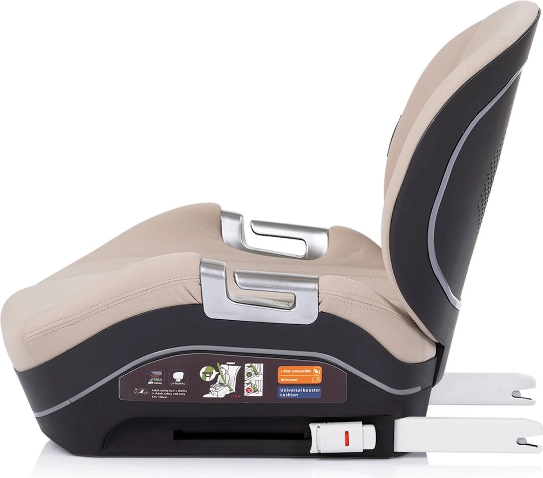 Le siège à la forme ergonomique, avec rembourrage moelleux, accoudoirs et dossier respirant amovible, offre du confort même sur les trajets plus longs. Les indicateurs verts de sécurité confirment visuellement le bon encliquetage des connecteurs ISOFIX – il suffit de cliquer et de partir. La housse couleur Latte, avec des accents métalliques luxueux, est facile à nettoyer et souligne le style moderne de l’habitacle.