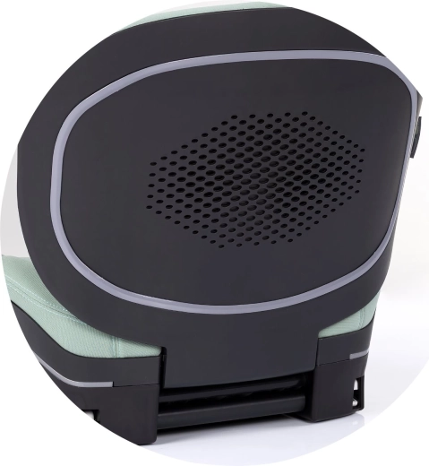 L’assise ergonomique, le rembourrage moelleux et les accoudoirs offrent du confort même lors de longs trajets. Le dossier amovible et respirant permet d’adapter le siège aux besoins actuels de l’enfant. Le design teinte Matcha est complété par de élégants détails métalliques conférant une allure premium.