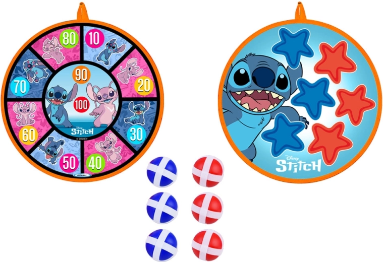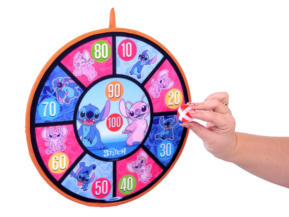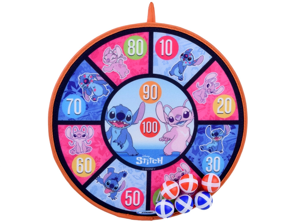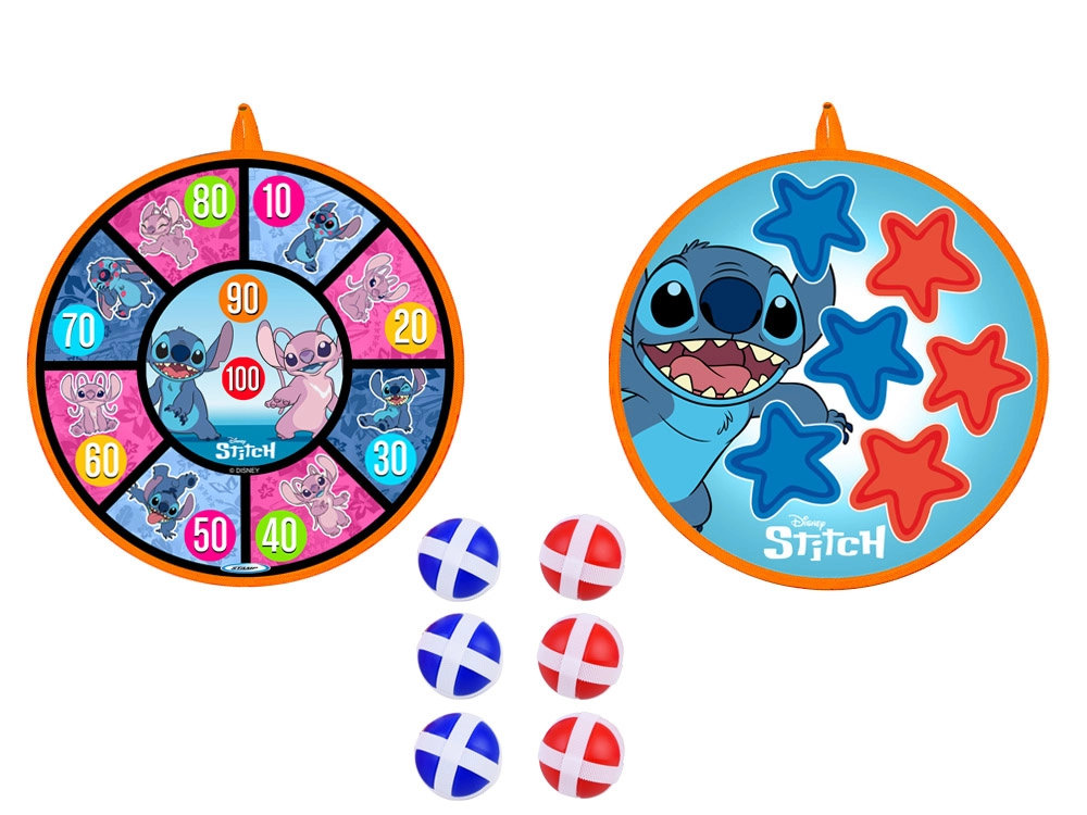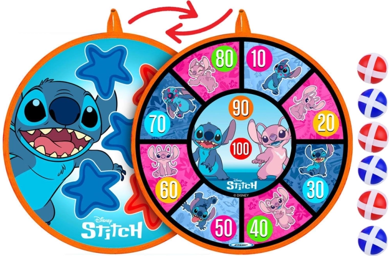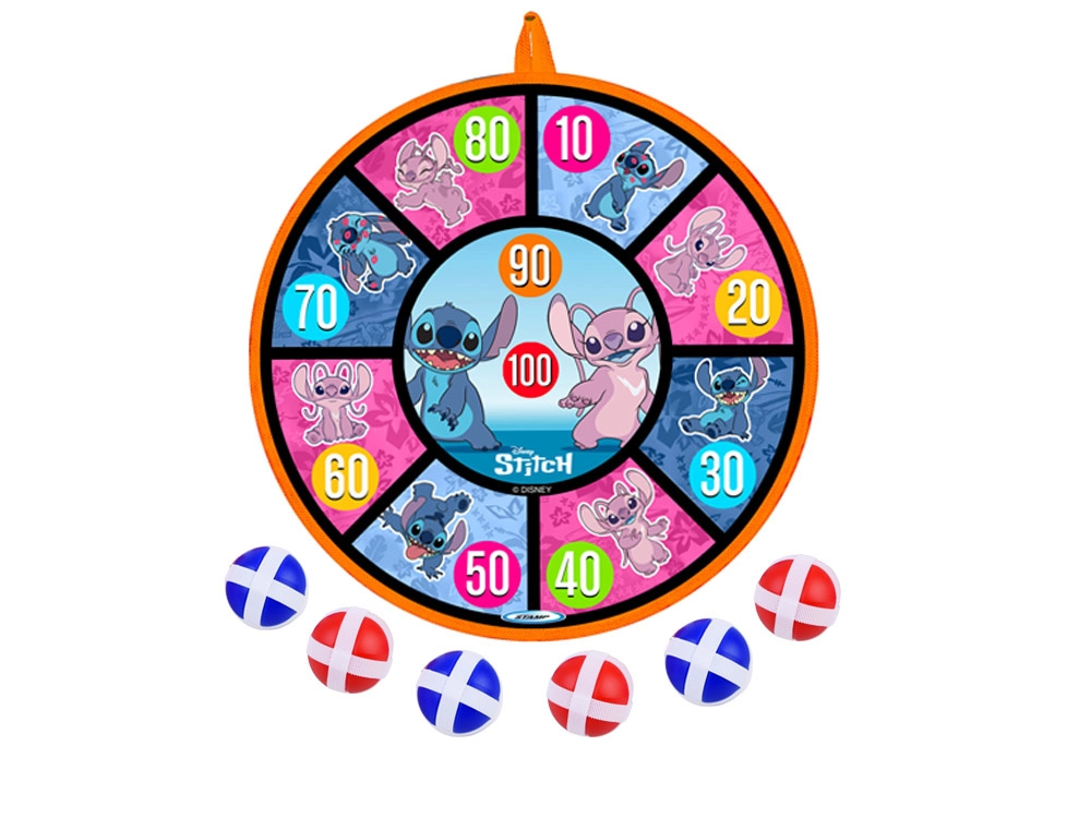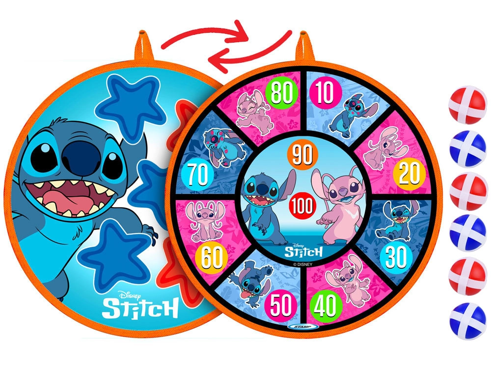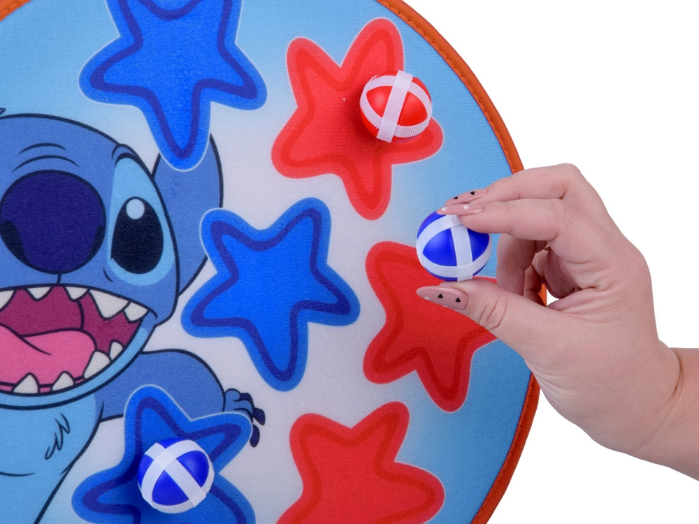 Jeu amusant et sûr pour les enfants avec le motif STITCH : cible à scratch double face de 36 cm de diamètre et 6 balles légères (4 cm). Favorise la coordination œil–main, la précision et le mouvement actif à la maison comme en plein air. Les balles souples adhèrent facilement à la surface et la cible peut être suspendue au mur, à une porte ou au jardin.