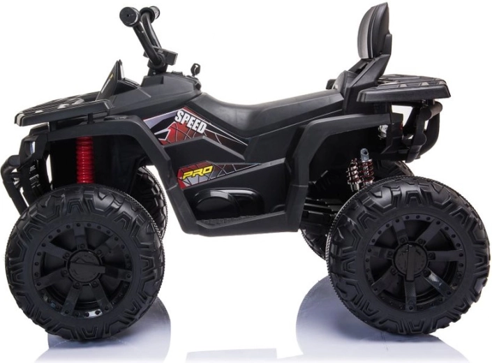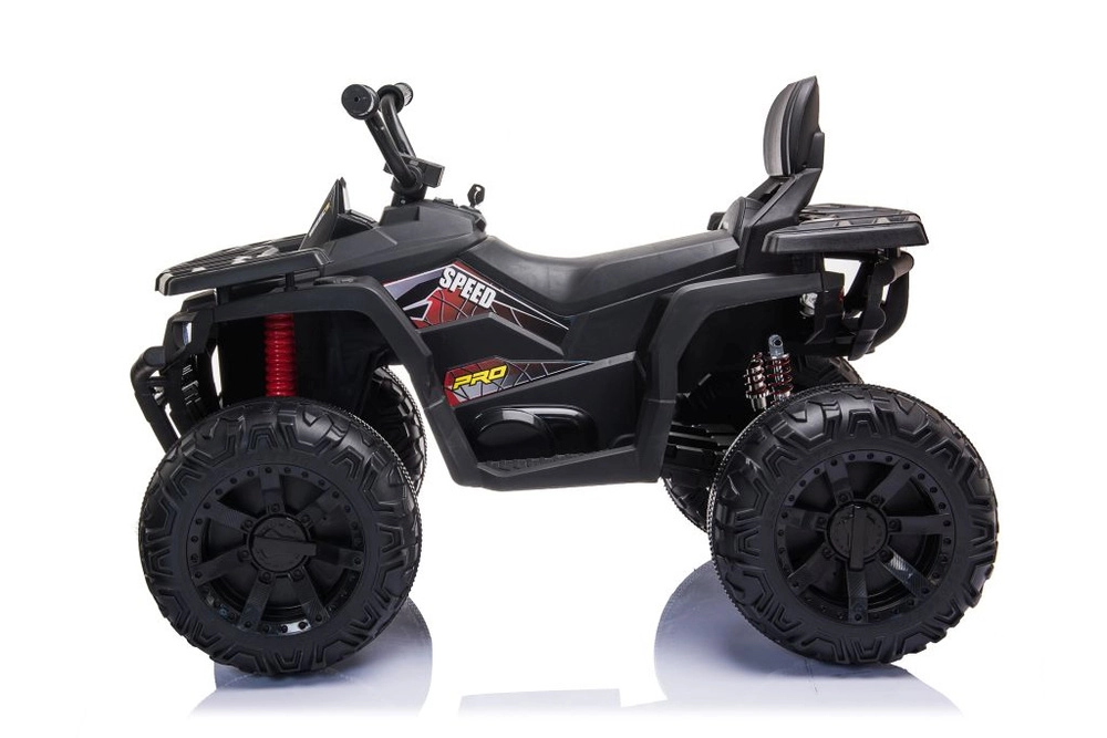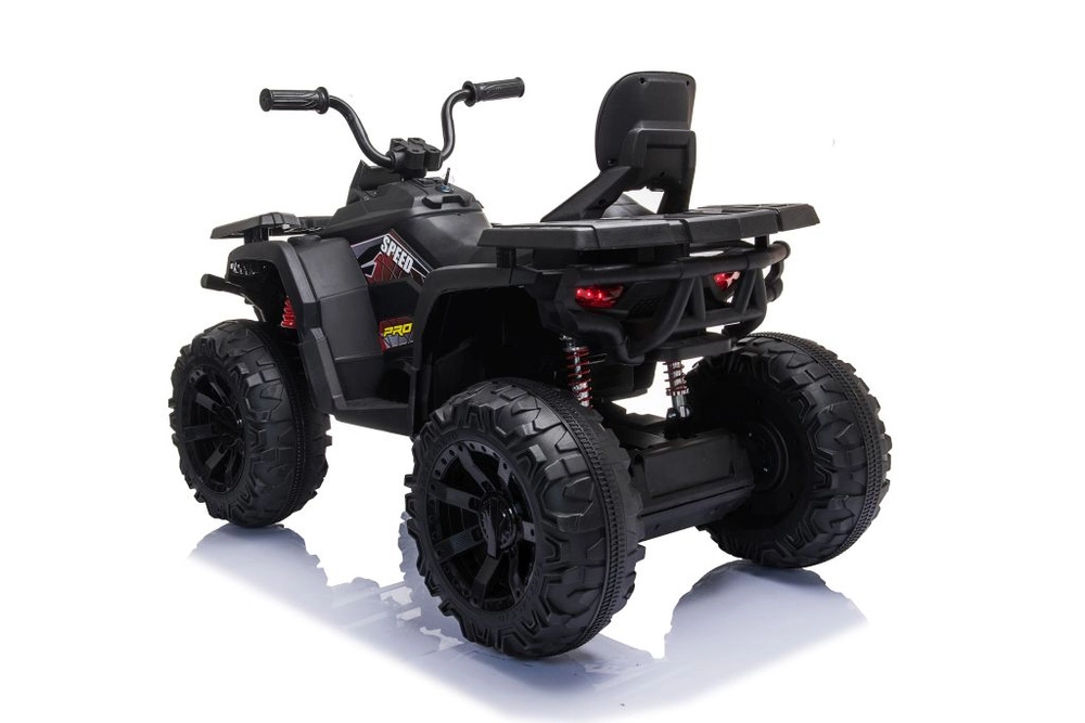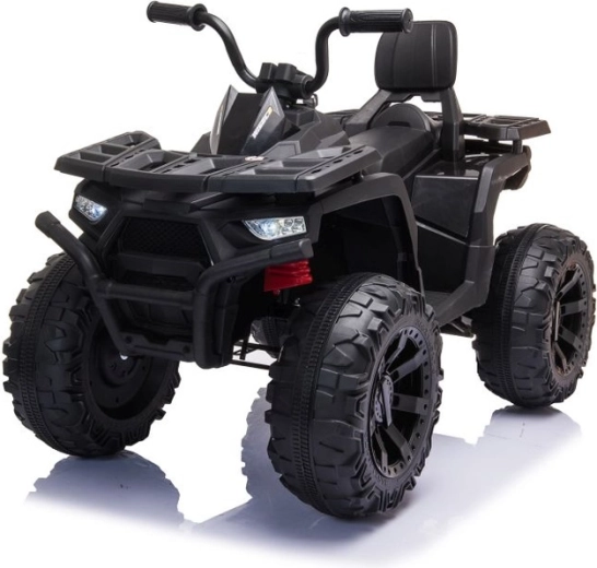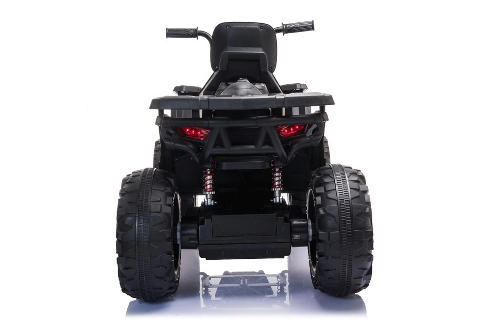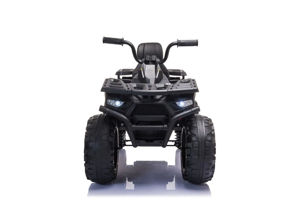 Quad électrique robuste pour enfants dans une élégante couleur noire, doté de larges pneus tout-terrain, d’un châssis stable à quatre roues et de phares LED lumineux pour une conduite réaliste. Idéal pour les petits aventuriers – selle confortable avec dossier, commandes sûres et look puissant pour le tout-terrain qui plaira à chaque enfant.
