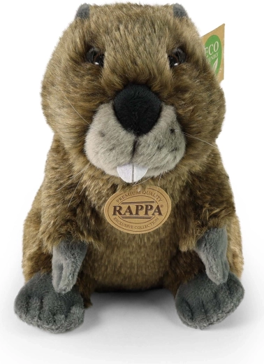 RAPPA se concentre sur une production durable et la réduction des plastiques. Le rembourrage en matériaux recyclés (PET) est totalement inoffensif et convient même aux tout-petits. Le castor constitue un excellent cadeau pour les jeunes amoureux des animaux et un complément parfait à une collection de jouets écoresponsables.