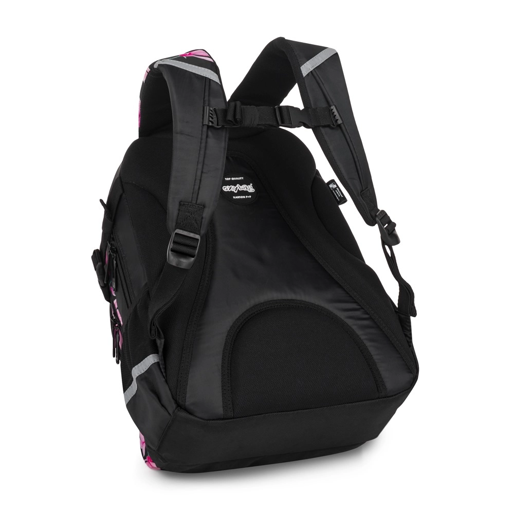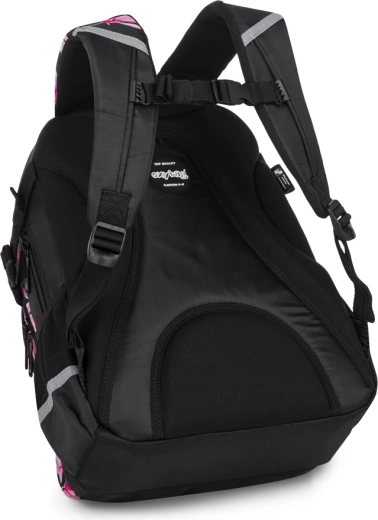 Pour un port confortable, le sac est équipé d’un dos anatomique respirant, de bretelles réglables et d’une sangle de poitrine, grâce auxquels il s’adapte parfaitement même lors de trajets plus longs. Le fond renforcé imperméable protège le contenu contre l’humidité et la saleté, et les éléments réfléchissants améliorent la visibilité des enfants sur le chemin de l’école et du retour.