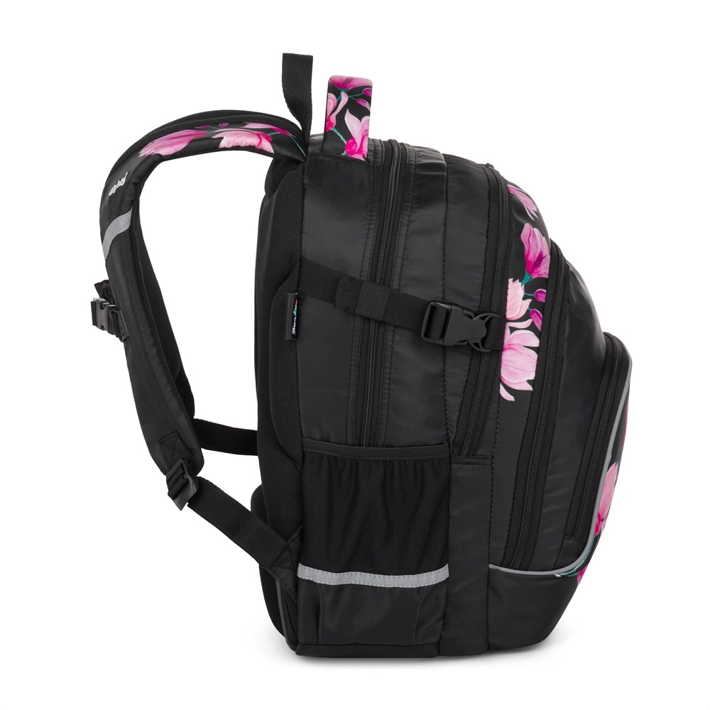 OXYBAG Scooler Magnolia est un compagnon fiable pour l’école et le temps libre. Trois compartiments spacieux accueillent manuels, cahiers et collation, les poches frontales avec organiseur maintiennent l’ordre dans les petites affaires et la poche intérieure protège votre ordinateur portable. La poche latérale est idéale pour une bouteille, tandis que le porte-clés ou badge pratique fait gagner du temps au quotidien.