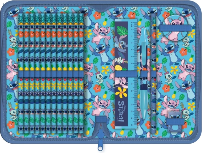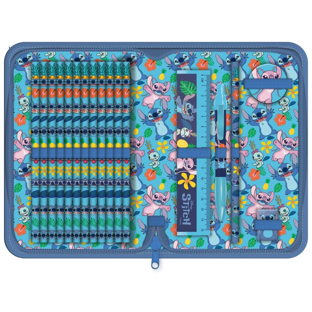 Trousse scolaire élégante avec le motif officiel Lilo et Stitch en bleu vif. L’intérieur est entièrement équipé de fournitures scolaires et offre une organisation claire grâce à des passants solides. Idéale pour les jeunes fans de Disney qui veulent avoir tout le nécessaire pour l’école en un seul endroit.