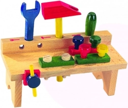 Le set contient tout le nécessaire pour un jeu sûr et amusant : tournevis, marteau, clé, écrous et vis. Le tout est fabriqué en bois de qualité avec une surface lisse pour une utilisation agréable et sécurisée. Emballé dans une boîte en carton, idéale aussi comme cadeau.