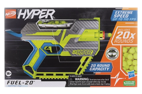 Le blaster NERF Hyper Fuel 20 est conçu pour des affrontements rapides et dynamiques. Grâce à sa forme compacte, il se manie facilement et permet des déplacements vifs sur le terrain. La gamme Hyper est reconnue pour sa cadence rapide et son alimentation en munitions fiable, vous garantissant une action fluide sans interruptions inutiles.