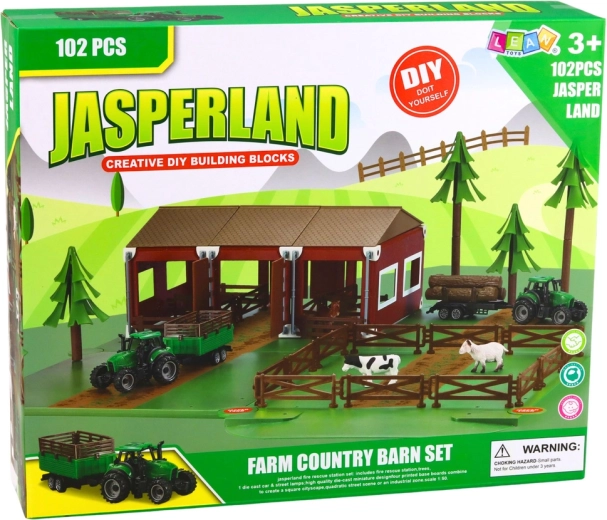 Jeu de construction ferme avec grange, tracteurs et animaux – 102 pièces