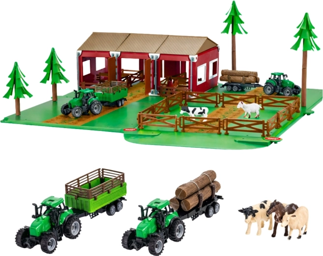 Deux tracteurs et deux remorques permettent de transporter du bois et d’autres chargements, reproduisant de façon réaliste les travaux à la ferme. Les détails soignés des bâtiments, clôtures et cabines des tracteurs en plastique de haute qualité garantissent durabilité et aspect attrayant.