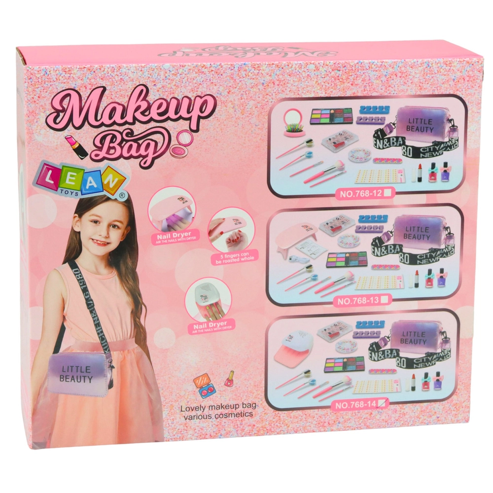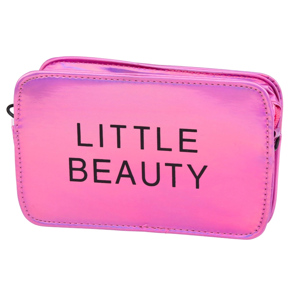 La trousse de beauté brillante avec l’inscription LITTLE BEAUTY garde tous les accessoires ensemble et est idéale pour le transport et le rangement.