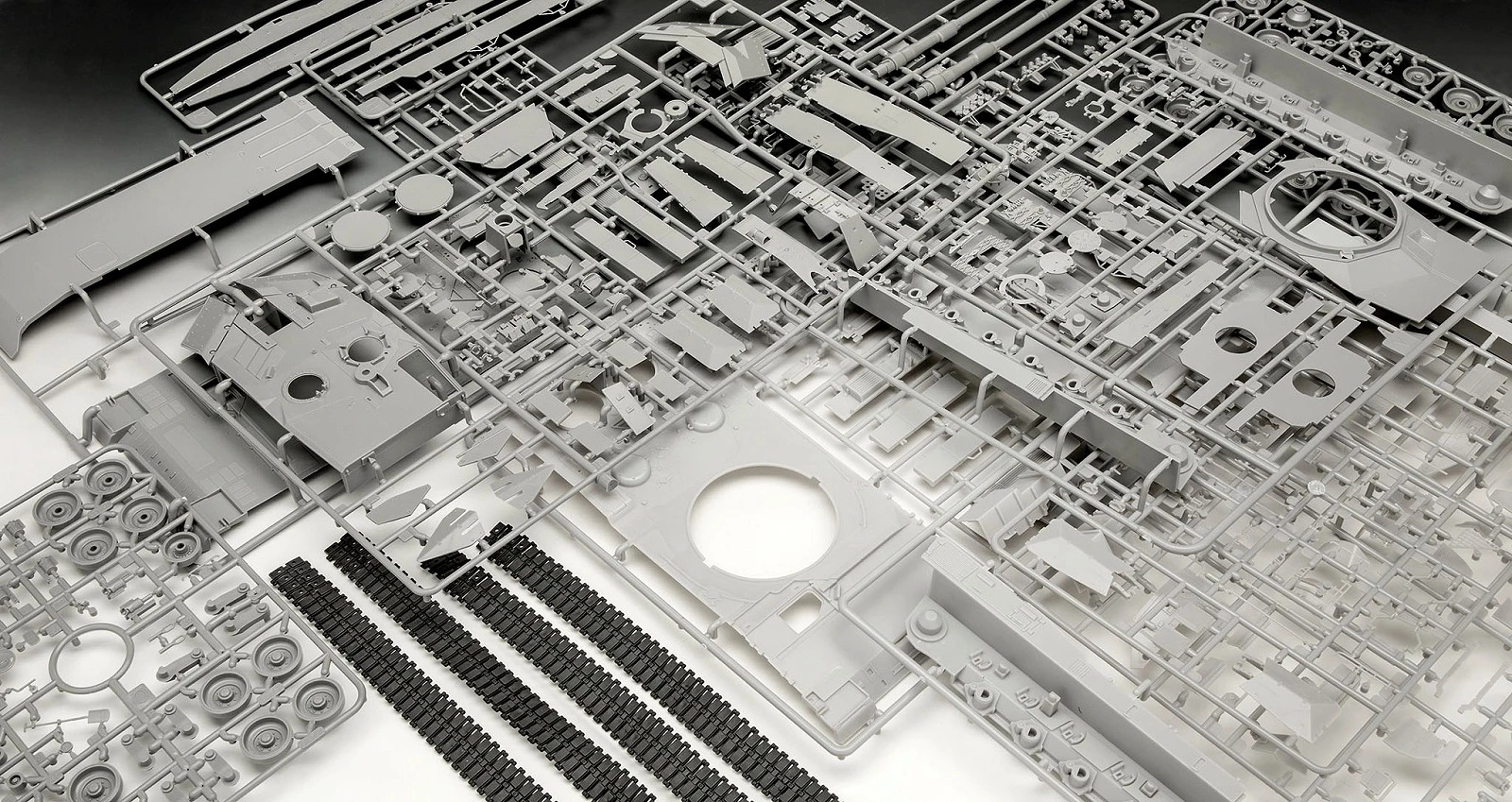 Pièces en plastique, notice illustrée multilingue, décalcomanies