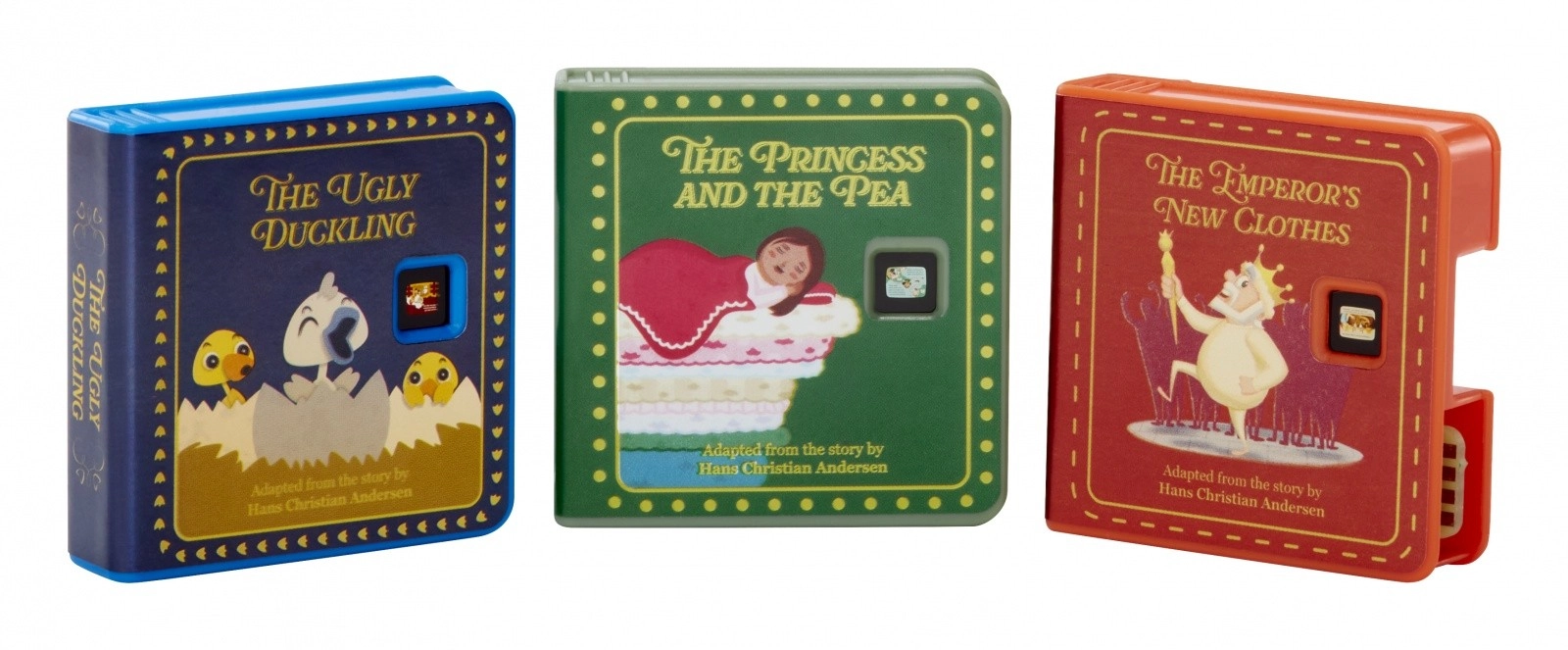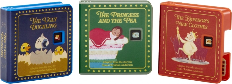Les poches latérales gardent les cartouches d’histoires toujours à portée de main. Une collection de titres extensible est disponible et peut être achetée selon les centres d’intérêt des enfants.