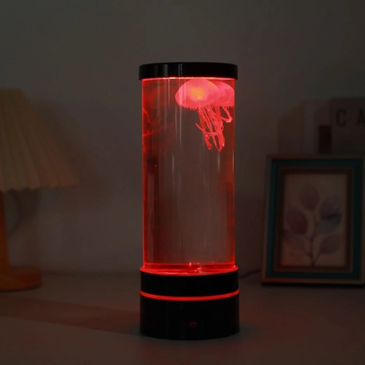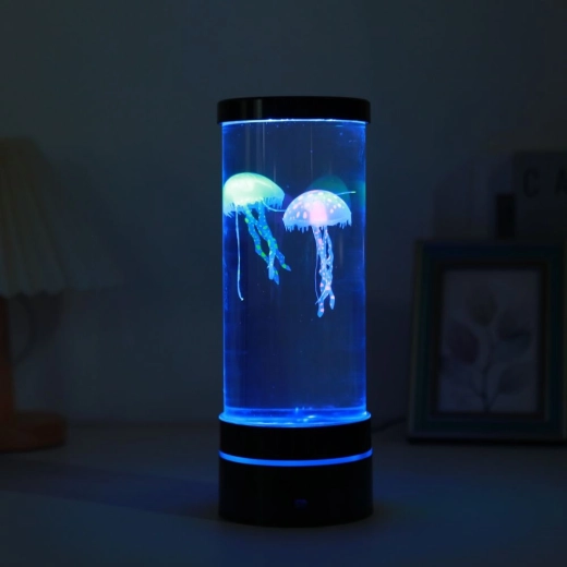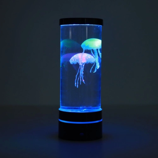 Découvrez la magie de l’océan chez vous. Le cylindre transparent avec deux méduses artificielles est éclairé par des LED multicolores qui s’enchaînent en douceur et créent des effets lumineux apaisants. Son format compact permet de l’installer sur un bureau, une étagère ou une table de nuit.