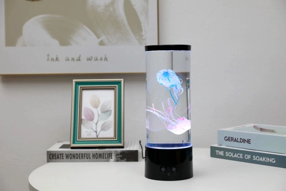 La petite lampe LED à méduses flottantes transforme votre intérieur en zone de détente. Le réservoir cylindrique transparent avec un éclairage doux crée l’illusion d’un véritable aquarium sans les contraintes d’entretien. Idéale comme décoration pour la chambre, le bureau ou la chambre d’enfant (ce produit n’est pas un jouet).