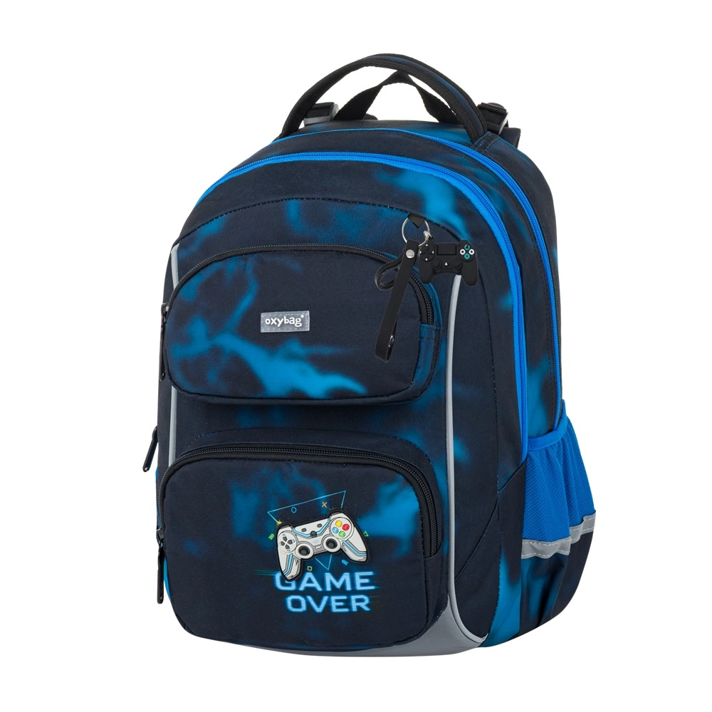 Le set scolaire OXY Jumper Gamer 3-en-1 est conçu pour le confort quotidien et la sécurité des enfants du primaire. Le sac à dos robuste au motif gaming dispose de deux compartiments pour manuels et cahiers, d’une poche avant pratique pour la boîte à goûter et de poches latérales ouvertes pour bouteille. Grâce au dos anatomique, aux bretelles rembourrées et réglables, aux sangles de rappel de charge et à la sangle de poitrine, le sac assure une bonne répartition du poids et un port confortable.