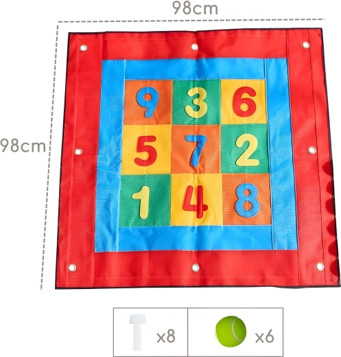 Cette grande cible STEM d’environ 98 × 98 cm associe défi sportif et apprentissage ludique des nombres. Des règles simples, des couleurs vives et un retour immédiat à l’impact motivent les enfants à s’entraîner à répétition et à collaborer en groupe.