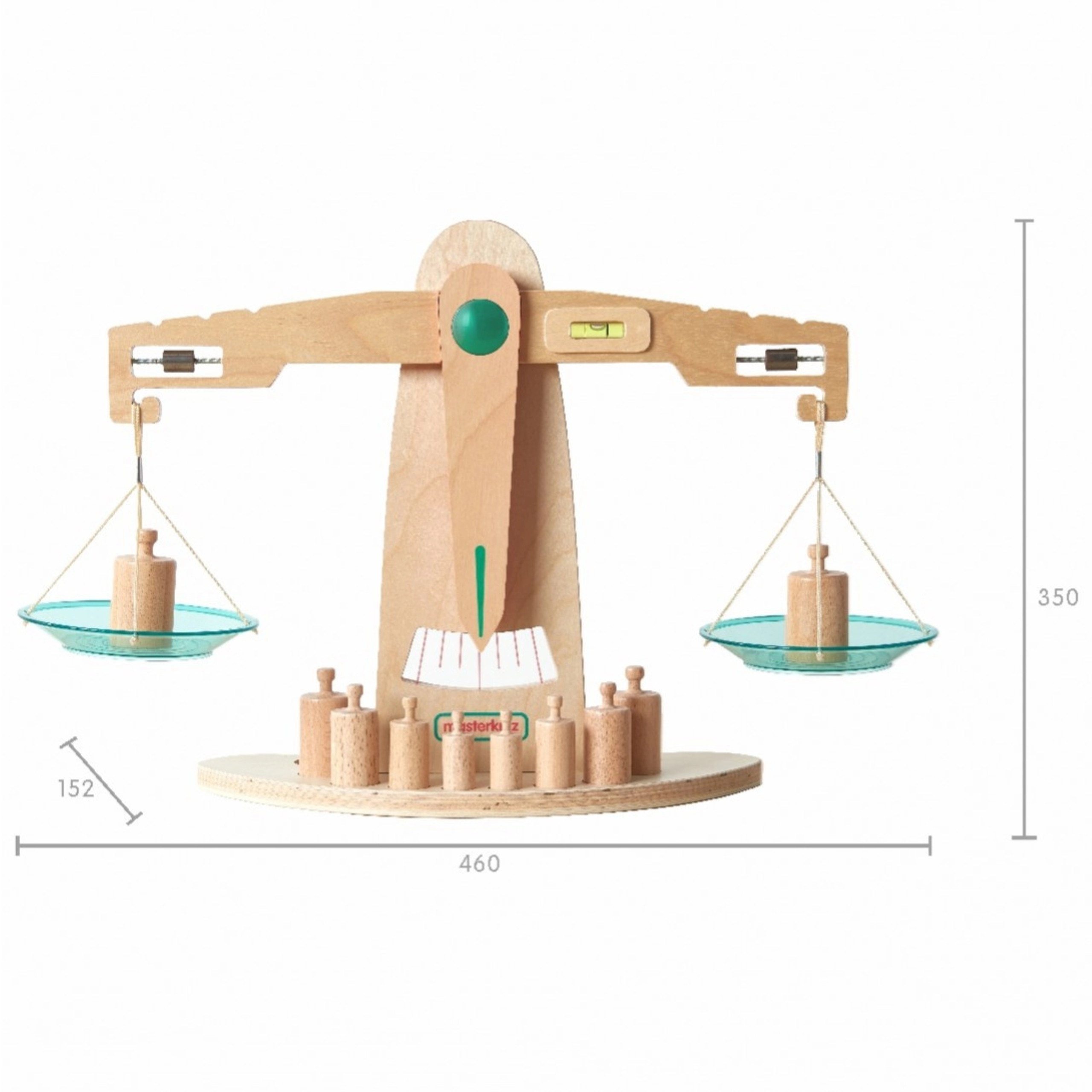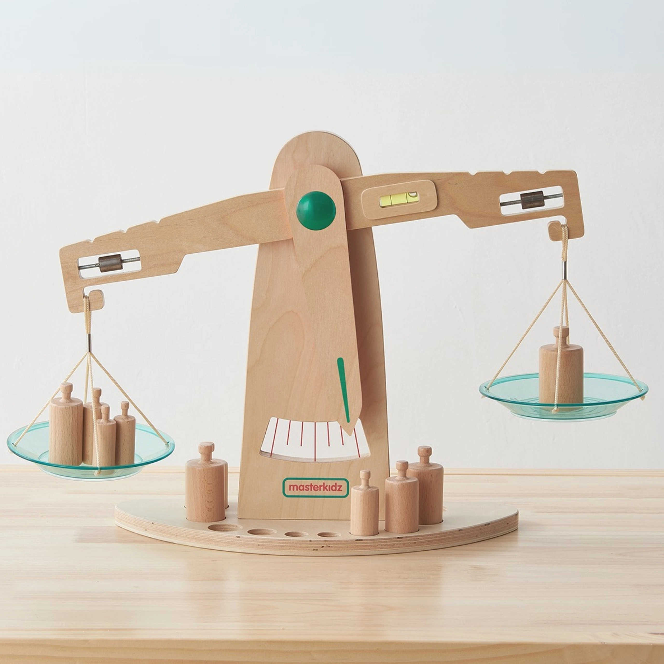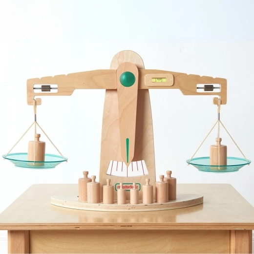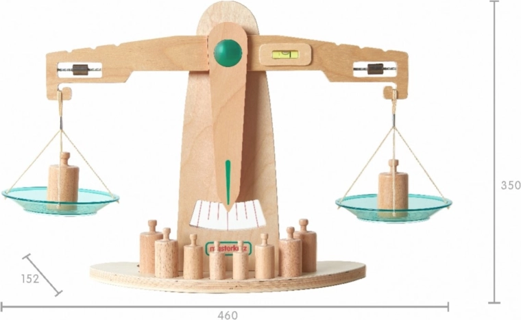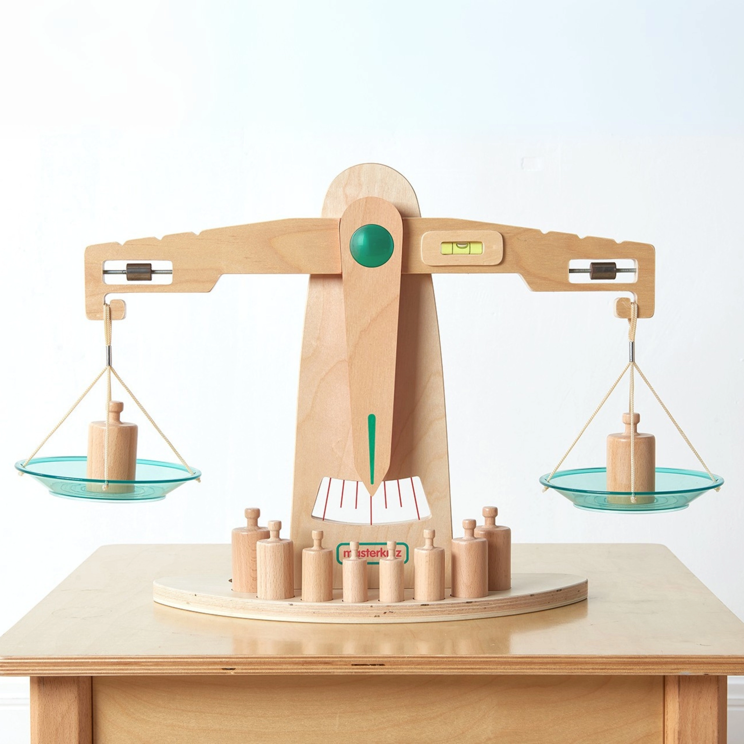 Découvrez une façon ludique d’initier les enfants à la mesure et à l’équilibre : la balance en bois avec plateaux MASTERKIDZ offre une construction en bois robuste, un indicateur réaliste et une niveleuse intégrée pour un équilibrage précis. Elle est fournie avec 10 poids en bois permettant aux enfants de comparer facilement la masse des objets, de développer la pensée logique, la motricité fine et la compréhension de la physique.