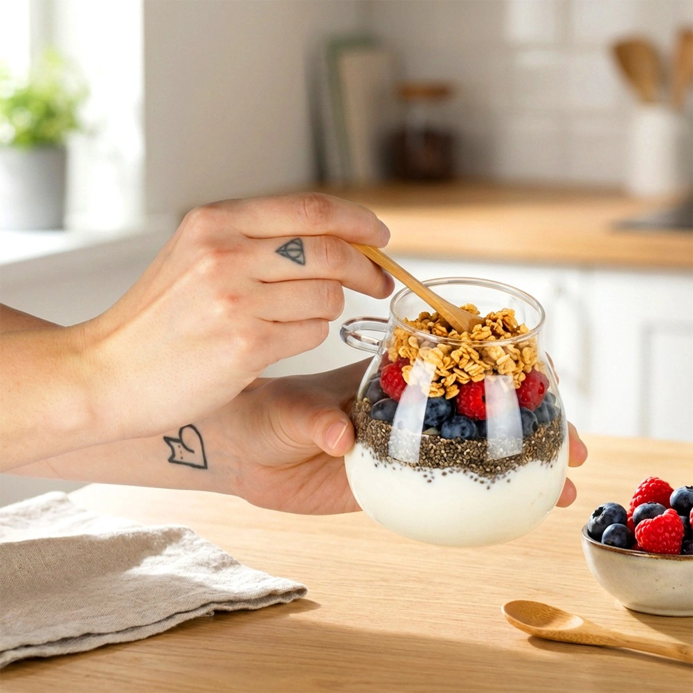 Les pots sont fabriqués en verre résistant et conviennent aussi bien à un usage quotidien qu’à un service élégant lors de fêtes ou en restauration. Grâce à la plage de température de -20 °C à 120 °C, ils sont adaptés aux préparations froides comme chaudes; sans couvercle, ils passent au micro-ondes.