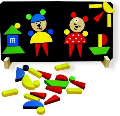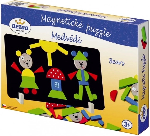Puzzle magnétiques Ours offrent une manière amusante et créative de développer la motricité fine et l’imagination des enfants. Le set comprend une planche magnétique et 37 pièces en bois permettant de créer différentes images.