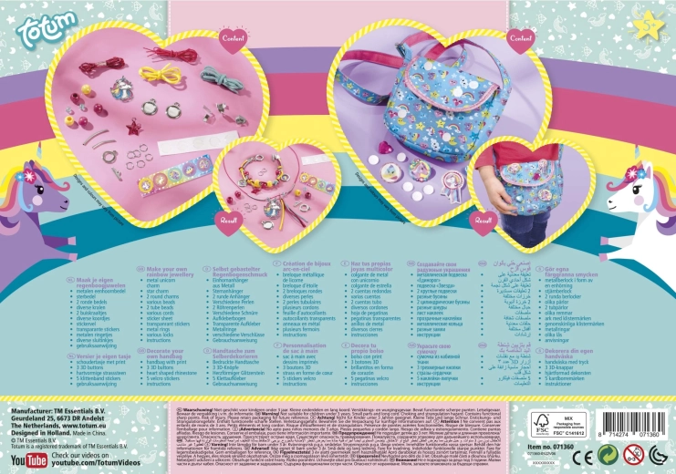 Développez l’imagination des enfants avec le kit créatif 2-en-1 sur le thème de la licorne de la marque TOTUM. Les enfants créeront leurs propres bijoux et décoreront un sac en tissu à l’aide d’accessoires. Le kit favorise la motricité fine, la créativité et le sens esthétique.