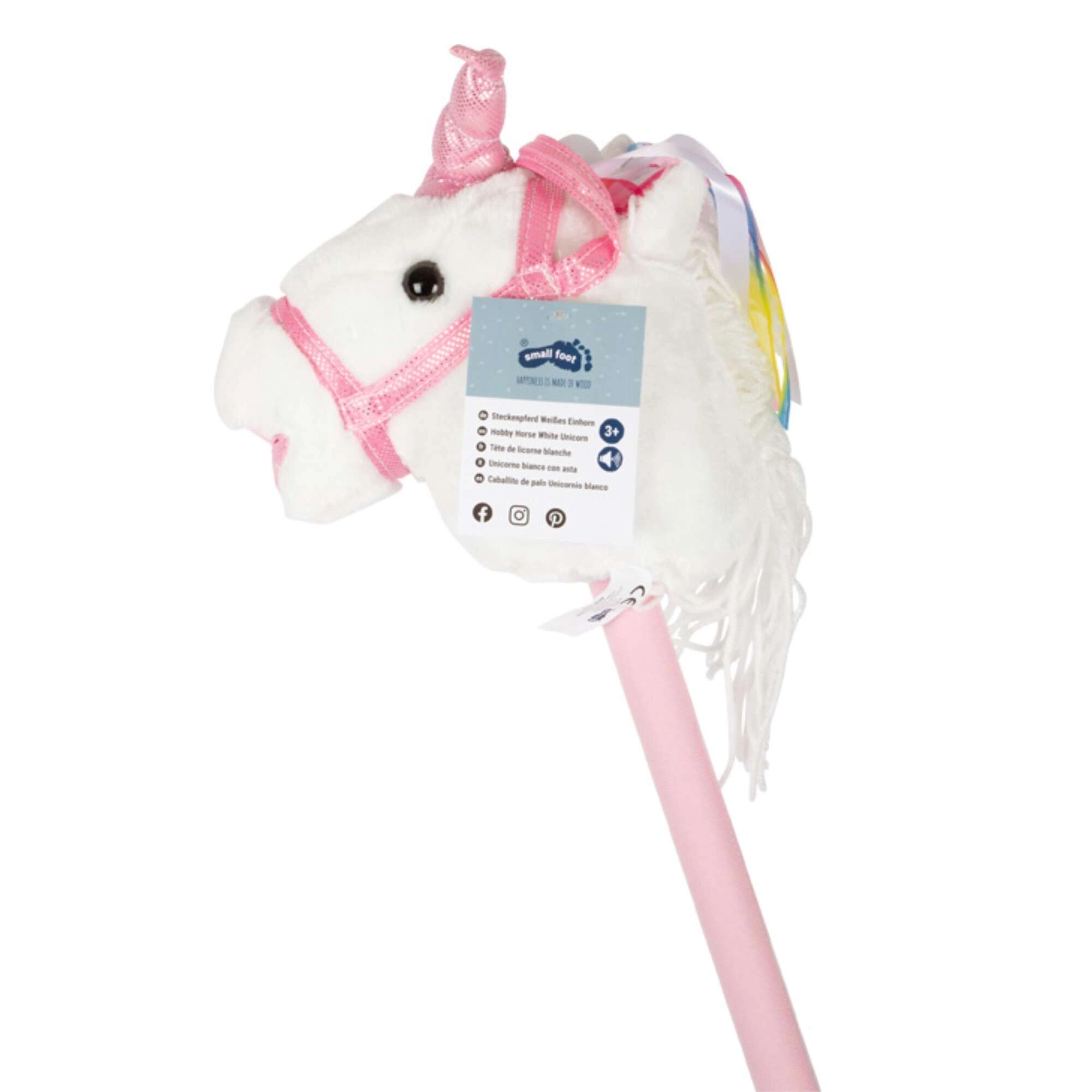 La douce peluche, la corne rose scintillante, la belle crinière et les rubans font de cette licorne un compagnon irrésistible pour le jeu quotidien.