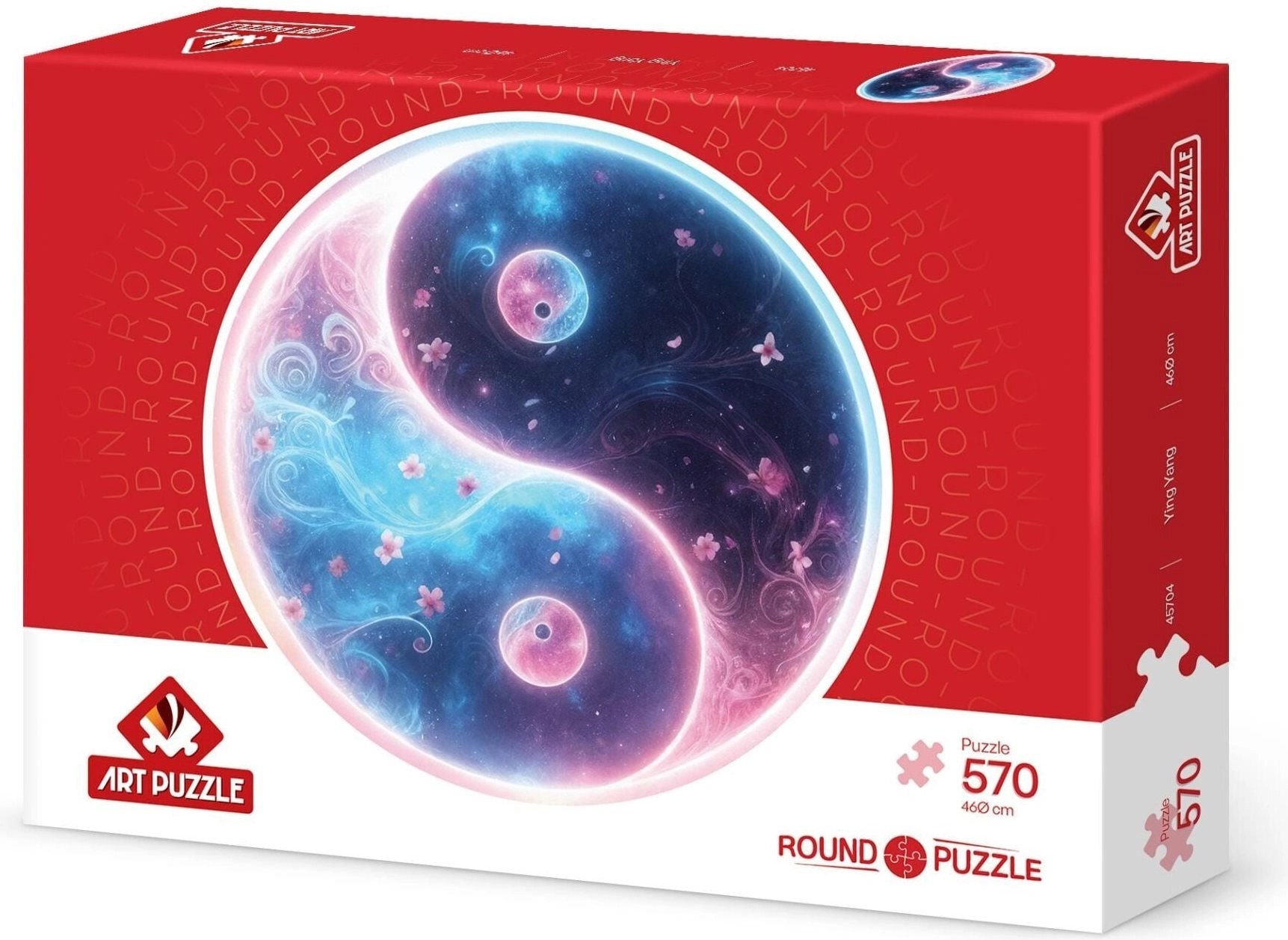 Découvrez un puzzle rond unique au motif Yin et Yang, qui séduit par sa forme originale et son design élégant. Avec 570 pièces, il offre un défi idéal pour se détendre et entraîner sa concentration, et une fois assemblé, il forme une image saisissante d’un diamètre de 46 cm.