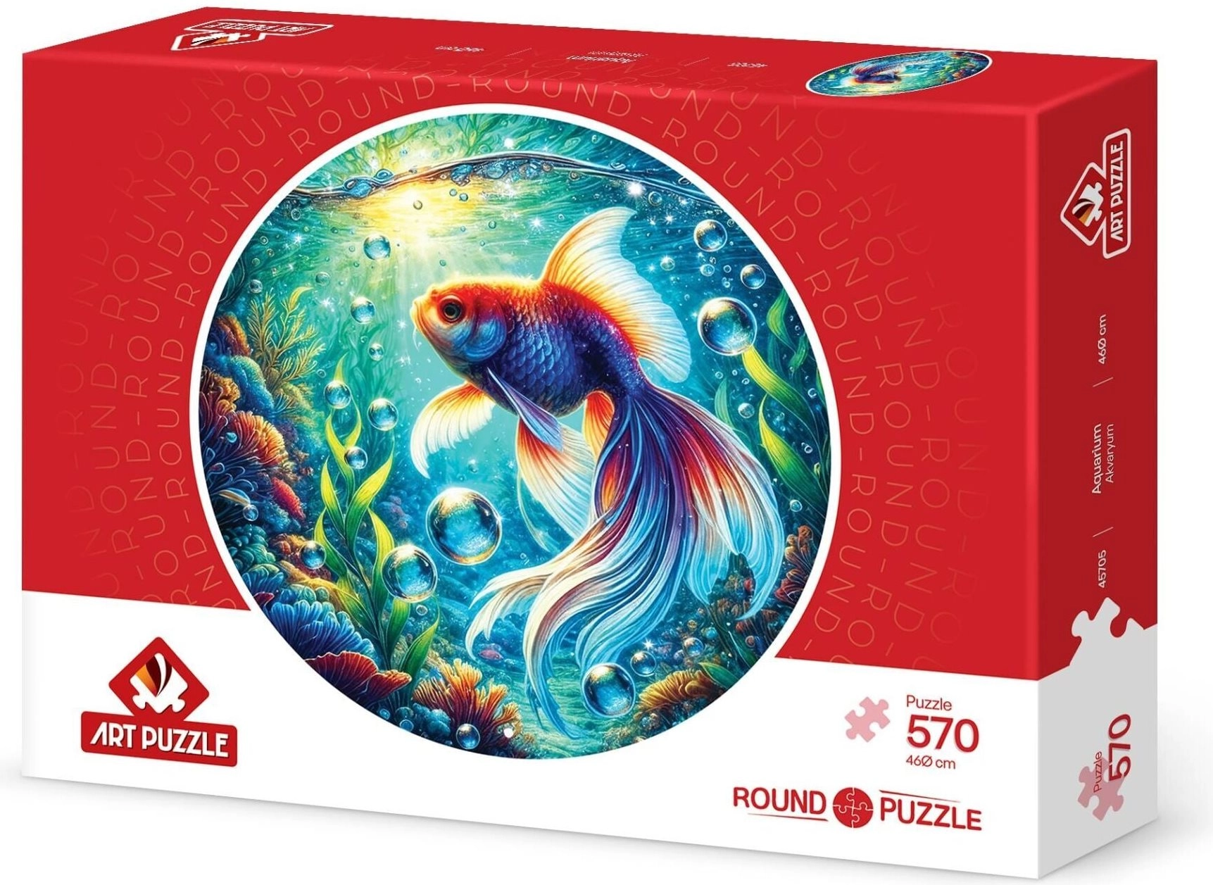Découvrez le plaisir du puzzle rond Aquarium de 570 pièces. Grâce à sa forme circulaire originale et à son motif du monde sous-marin, il offre un défi pour les enfants comme pour les adultes et, une fois assemblé, crée une image décorative d’un diamètre de 46 cm.