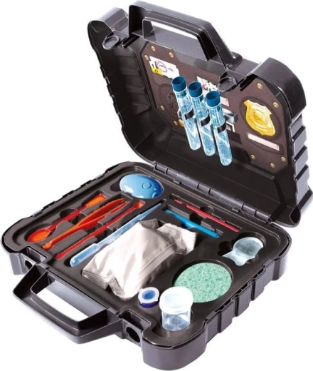 Avec cet ensemble, les enfants endossent facilement le rôle de véritables détectives. La mallette offre des expériences de jeu dynamiques avec effets sonores et musicaux qui les plongent encore plus dans l’action. Elle contient tout le nécessaire pour une première enquête – par exemple une loupe, un carnet de notes et d’autres accessoires pratiques.