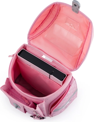 L’intérieur bien pensé avec séparateur, compartiment rembourré et poches pratiques maintient l’ordre dans les manuels, cahiers et le goûter. La fermeture magnétique permet une ouverture rapide et facile, le fond rigide avec pieds conserve la forme et protège le contenu. Les éléments réfléchissants augmentent la sécurité sur le chemin de l’école et du retour.
