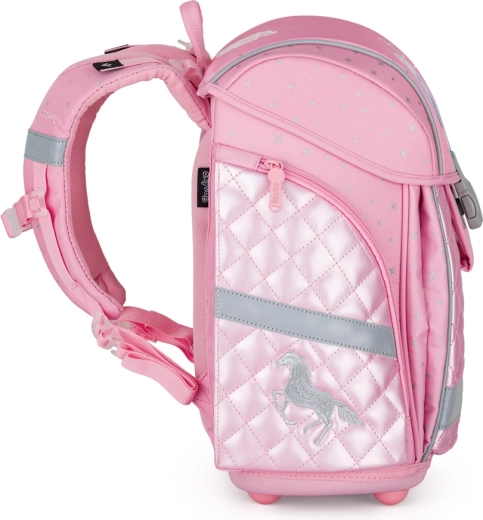 Le cartable scolaire Premium Light au motif Horse Girl, léger et ergonomique, est idéal pour l’école primaire. Il ne pèse que 970 g, offre un volume de 26 l, une construction rigide, un rembourrage respirant, de larges bretelles matelassées et des sangles de poitrine et de rappel pour un port parfaitement confortable. Il comprend des éléments réfléchissants, une fermeture magnétique, un organisateur/séparateur intérieur et de nombreuses poches pour un rangement clair des fournitures scolaires.