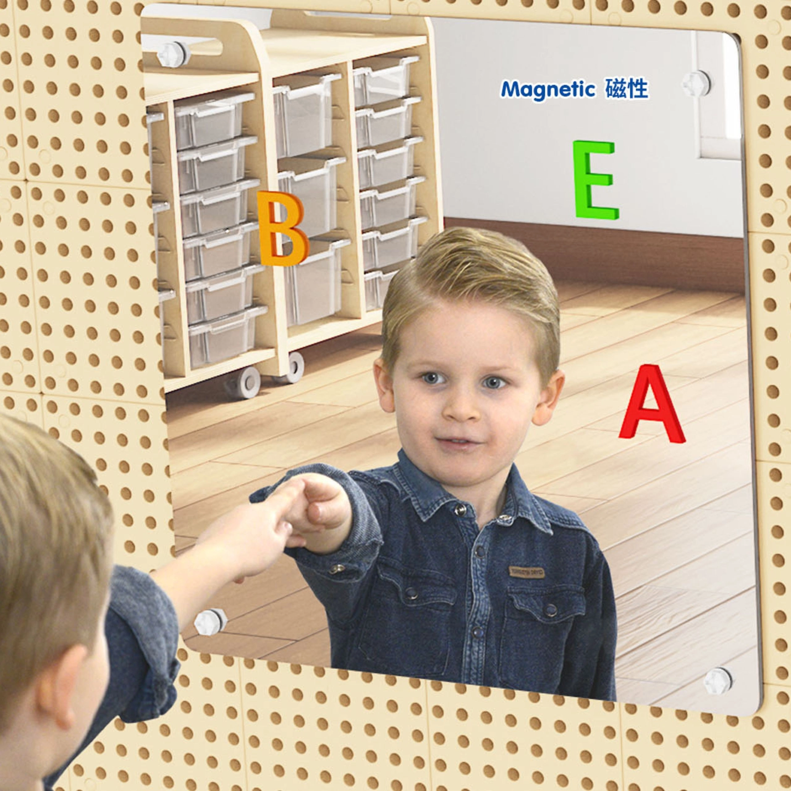 Découvrez le monde des reflets et du jeu magnétique avec le grand miroir carré MASTERKIDZ pour le système STEM. Il combine apprentissage interactif, jeux avec lettres et chiffres magnétiques et stimulation sensorielle. Grâce à sa construction robuste, à sa grande surface de 60 × 60 cm et à son profil fin, il est idéal pour les espaces éducatifs et sensoriels modernes.