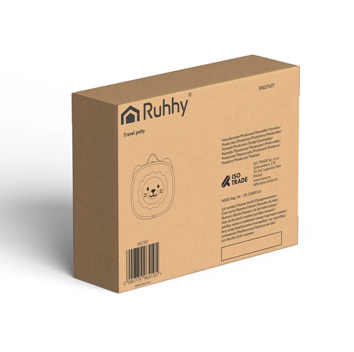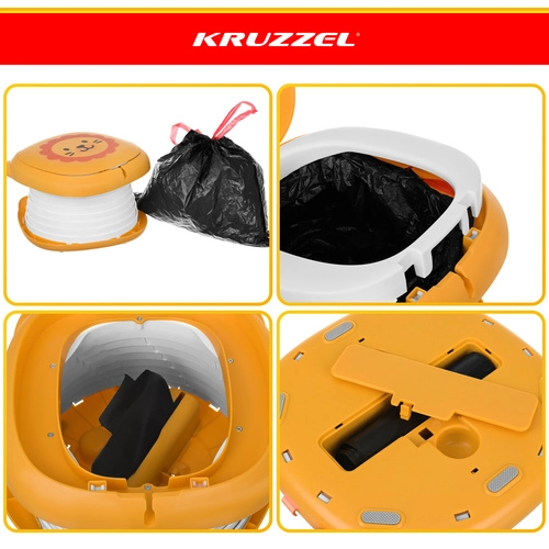 - pot de voyage KRUZZEL Lion, sachets hygiéniques jetables, notice multilingue, emballage carton