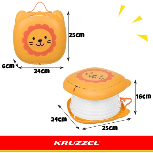 Le pot pliable KRUZZEL – Lion est conçu pour le confort des enfants et la tranquillité des parents en voyage. Son design de lion adorable motive l’enfant à l’utiliser hors de la maison, tandis que la solide structure en ABS et la poche en silicone garantissent confort, stabilité et facilité de nettoyage. Un espace de rangement intégré pour un rouleau de sachets signifie que tout le nécessaire est toujours à portée de main.