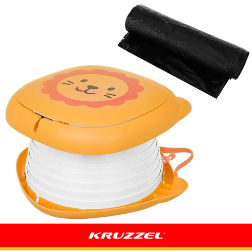 Quand le petit voyageur a soudainement besoin, vous apprécierez cet assistant pratique : le pot de voyage pliable KRUZZEL au motif de lion. Il se déplie en quelques secondes et s’utilise avec un sac jetable – sans stress et sans salissures. Grâce à ses dimensions compactes, il tient dans un sac ou un sac à dos et offre une assise stable et sûre jusqu’à 50 kg. Des sachets jetables hygiéniques, un pliage rapide et une fermeture du couvercle fiable font de ce pot le choix idéal pour les sorties, la voiture et les vacances.