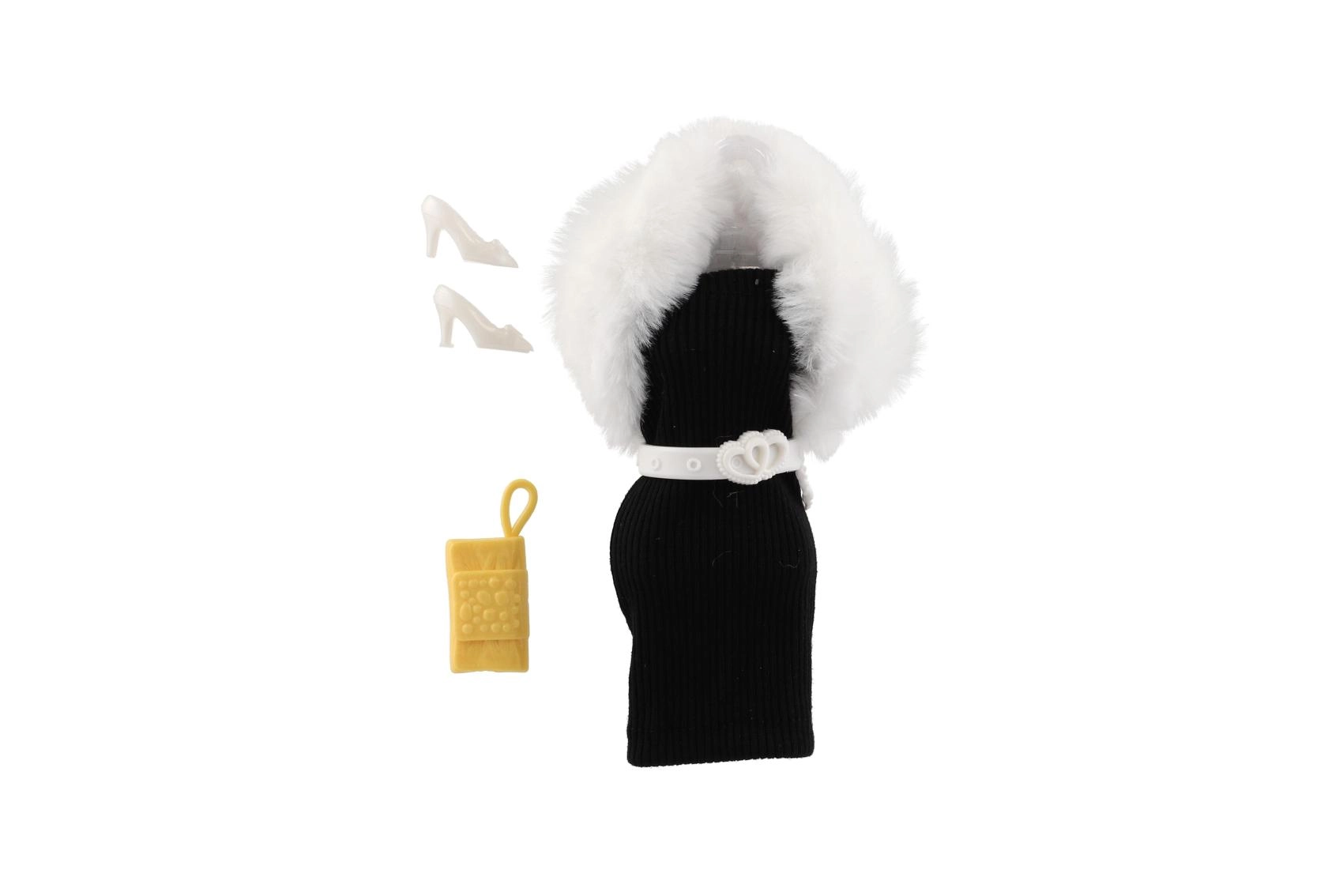 Chaque set comprend des accessoires assortis – des escarpins blancs et une petite pochette/sac à main pour parfaire le style.