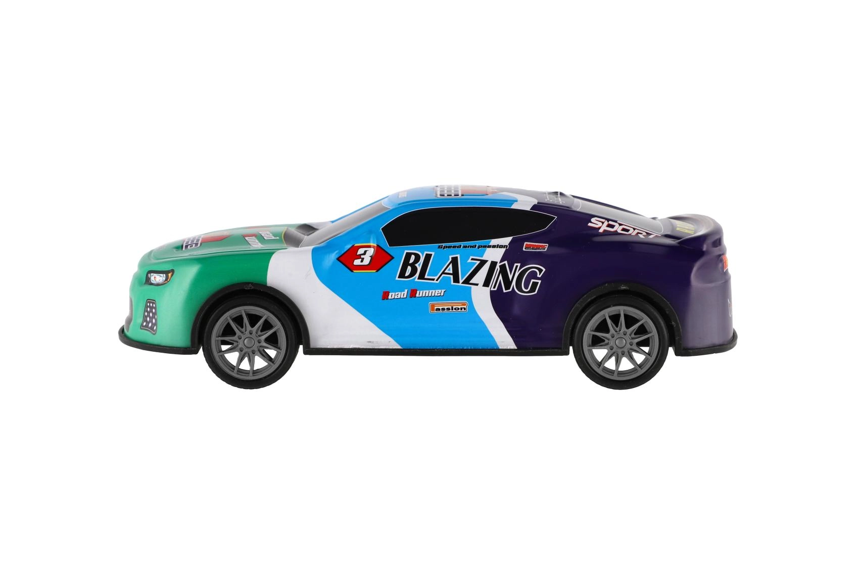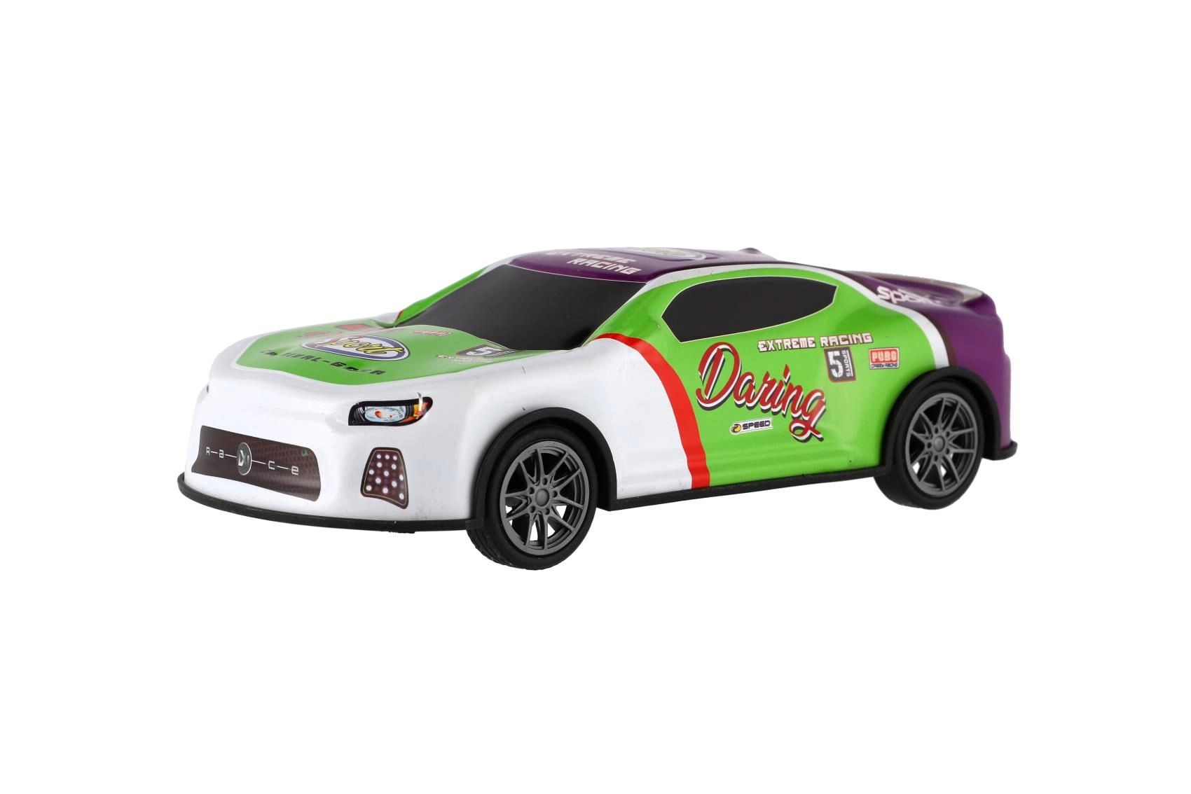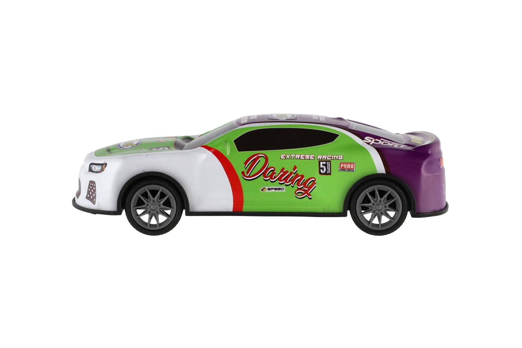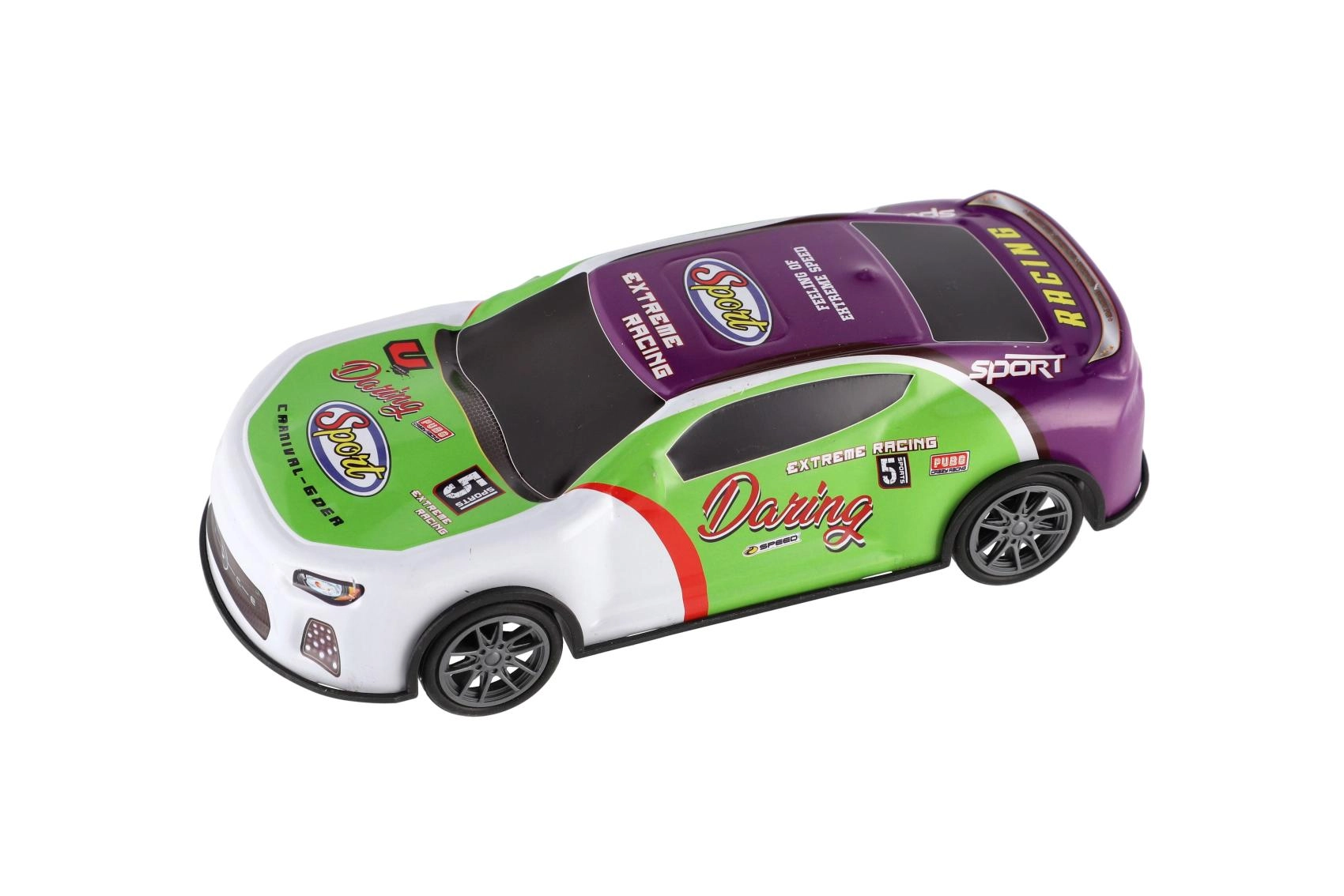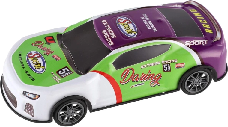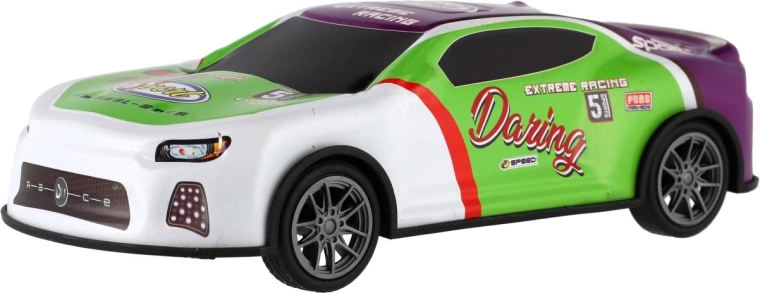Couleurs vives, autocollants de course et forme aérodynamique stimulent l’imagination et invitent aux compétitions sur toute surface plane.