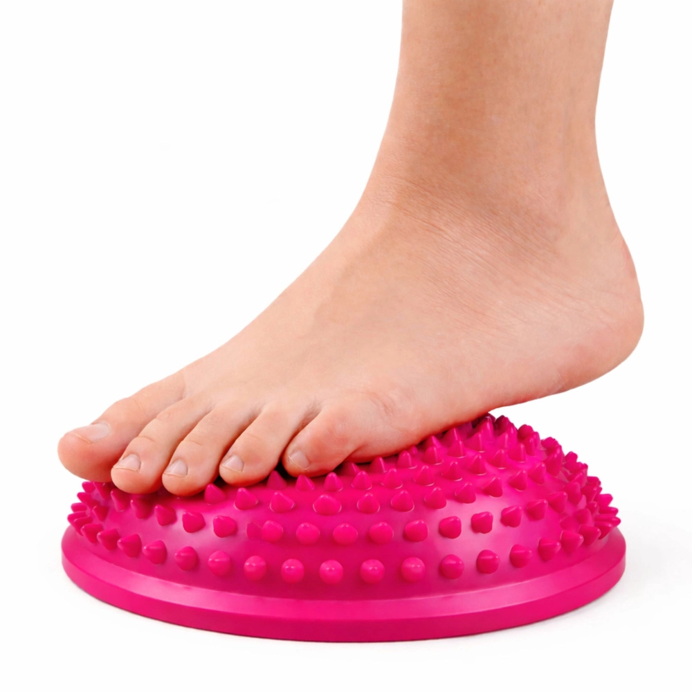 Cette demi-sphère rose de 16 cm de diamètre est idéale pour renforcer le système de stabilisation profond, améliorer la coordination et développer la proprioception. Sa surface à picots denses offre une stimulation agréable des pieds, aidant à relâcher les tensions et à soutenir une foulée saine.